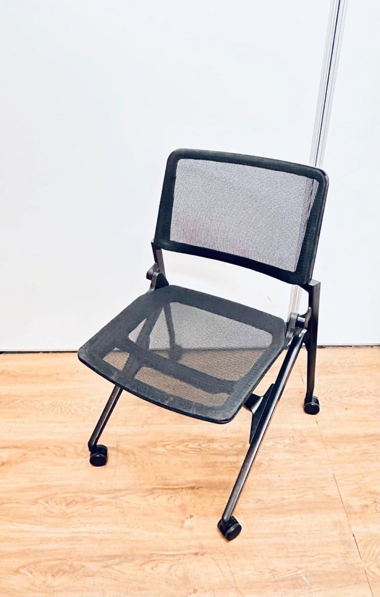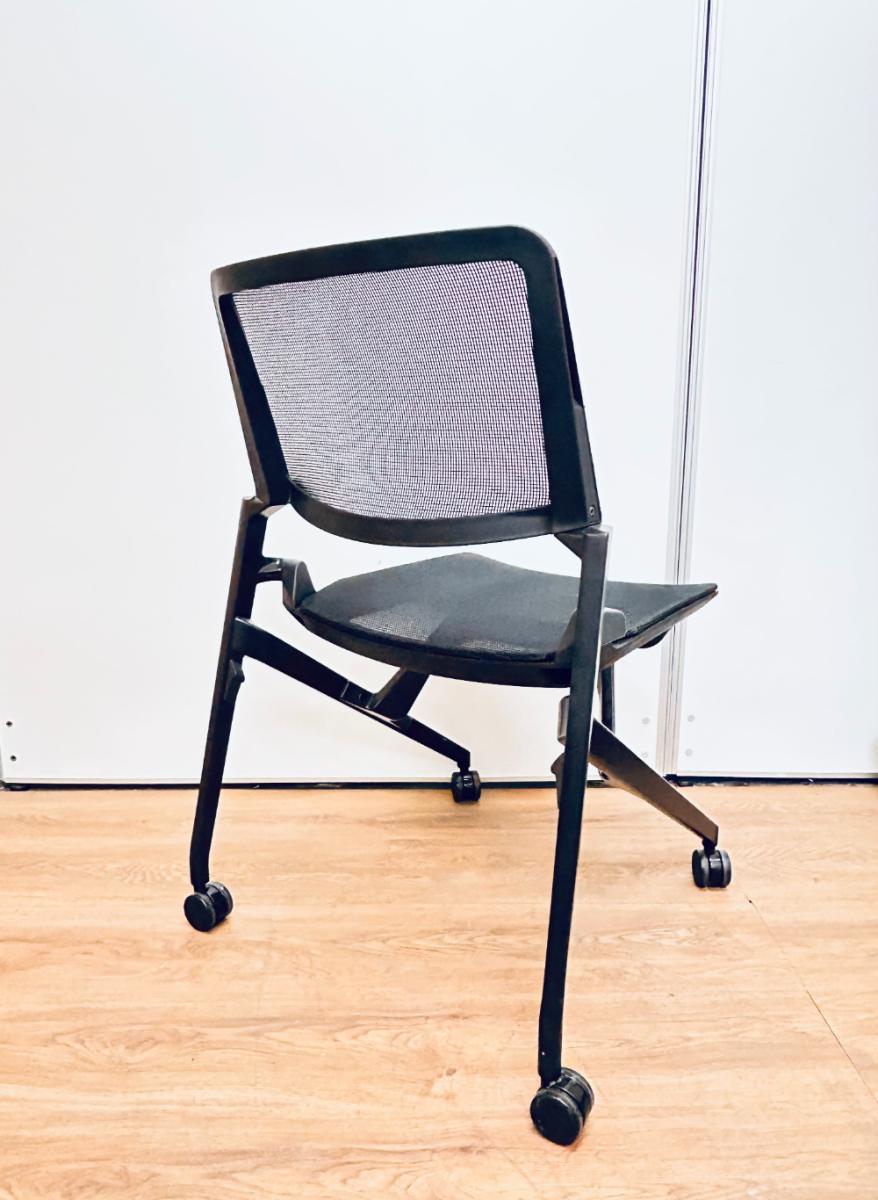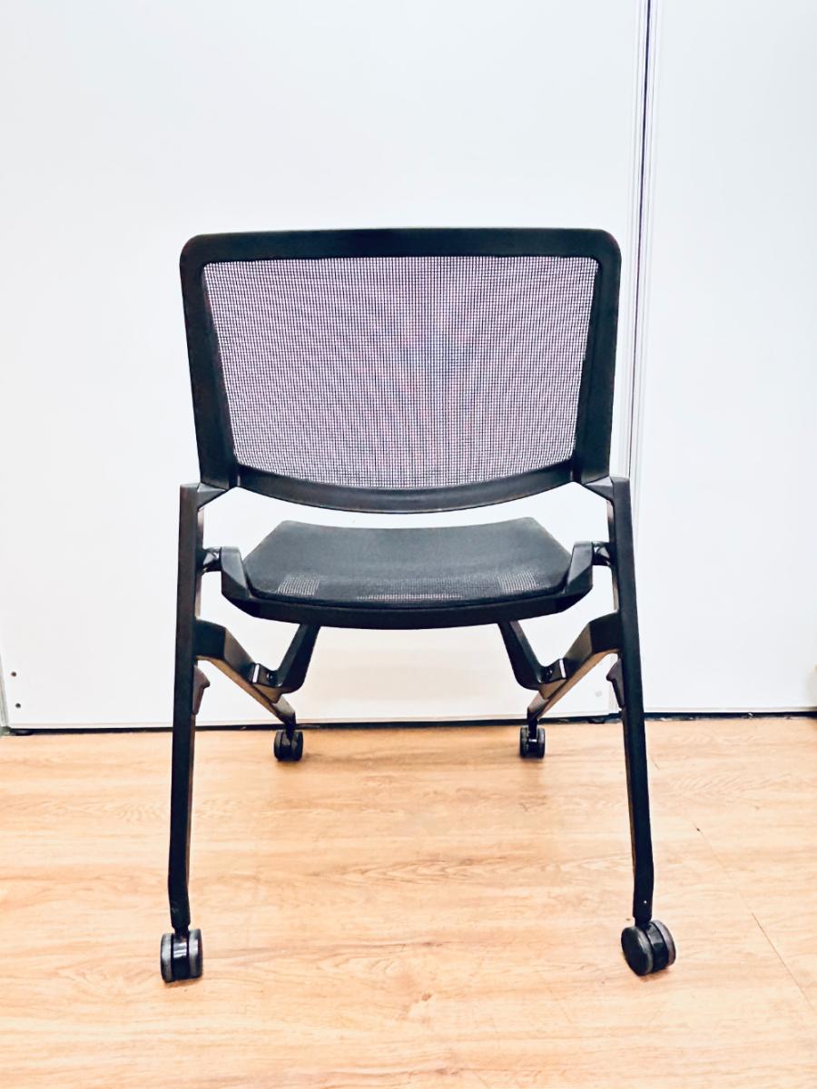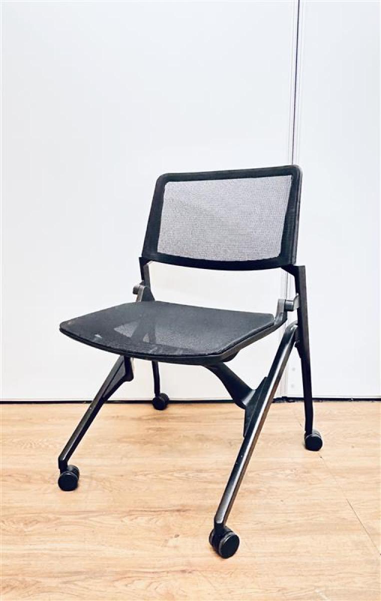 【4脚限定】【超レアな座面もメッシュなネスティングチェア】【現行モデル】オカムラ製 マルカシリーズ ブラックカラー クールなデザインのミーティングチェア!使わない時は重ねてコンパクトに! ネスティングチェア!! オフィスバスターズ 梅田本店- 大阪梅田本店