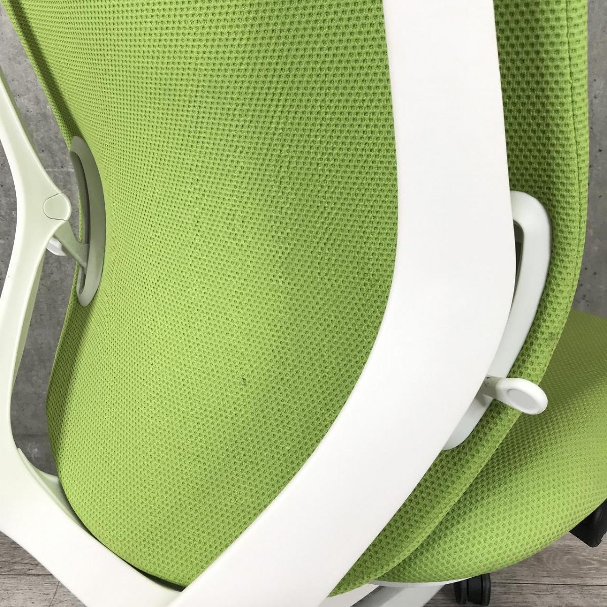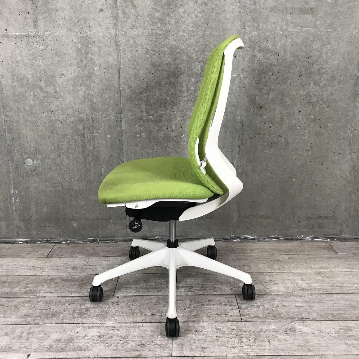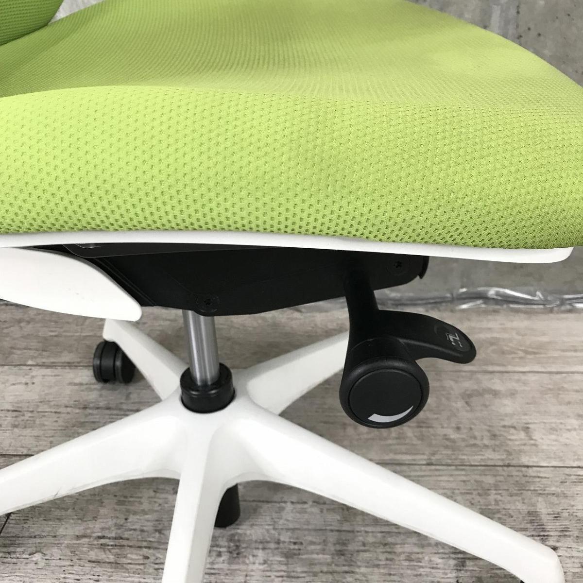 オカムラ製 シルフィーシリーズ ライムグリーン ホワイトフレーム 背面クッション コートハンガー付き 快適な座り心地を実現! 人気シリーズの背面クッションモデル! 肘無しハイバックチェア!!