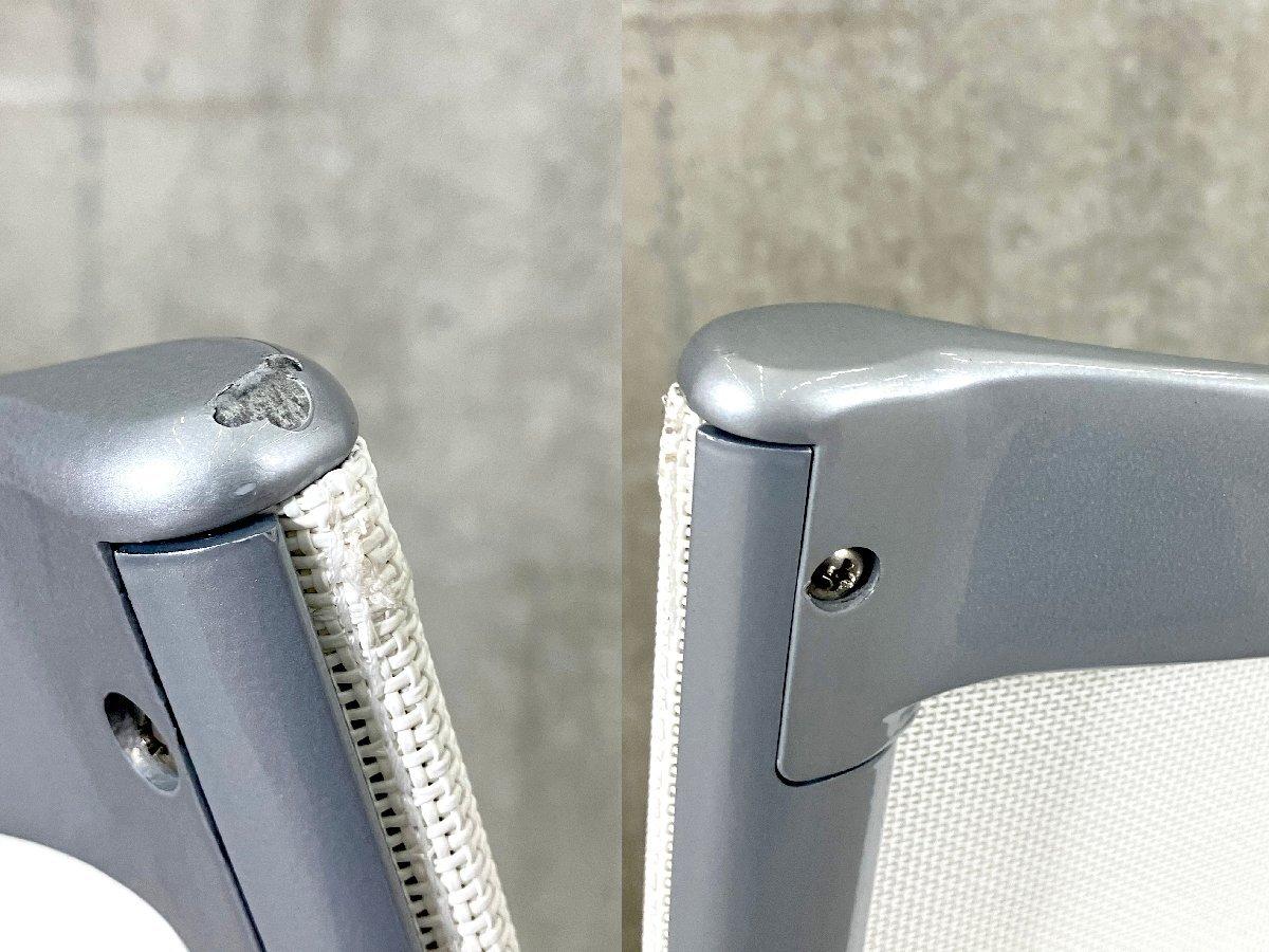 - 目立つ箇所あり傷・破れ・ほつれ・へたり・しわが多数または深い傷・破れ・ほつれ・へたり・しわが一部ある。※座面・背もたれ、シェル、脚部等にある。