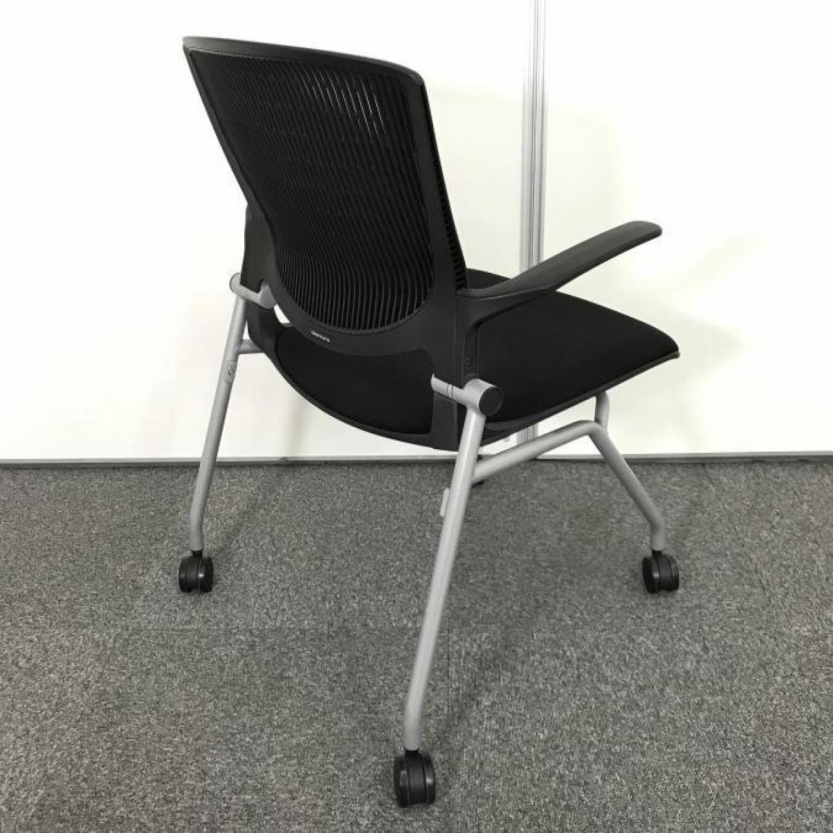 【しなやかにワーカーを受け止める洗練されたデザイン!使わない時はネスティング収納!】■オカムラ(okamura)製 グラータ(Grata) ミーティングチェア ネスティング ■固定肘付き ■背面樹脂メッシュ ■ブラック- 名古屋本店
