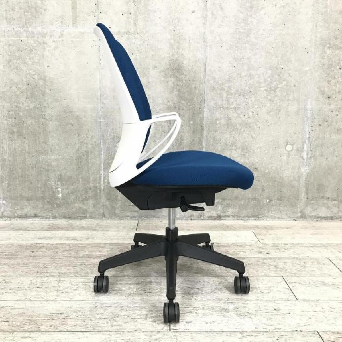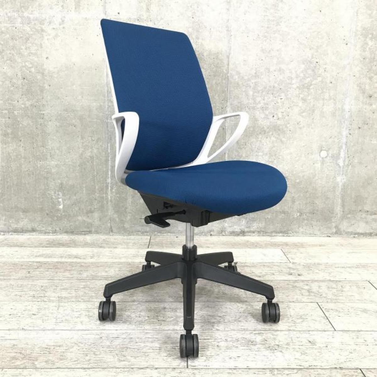 【デスクにスッキリ収納できるコンパクト設計!スマートデザインで使い勝手抜群!】■コクヨ(KOKUYO)製 ピコラ(picora)チェア 肘付き ローバック ■サークル肘 ■プルシアンブルー×ホワイトシェル×脚ブラック※背面日焼け有