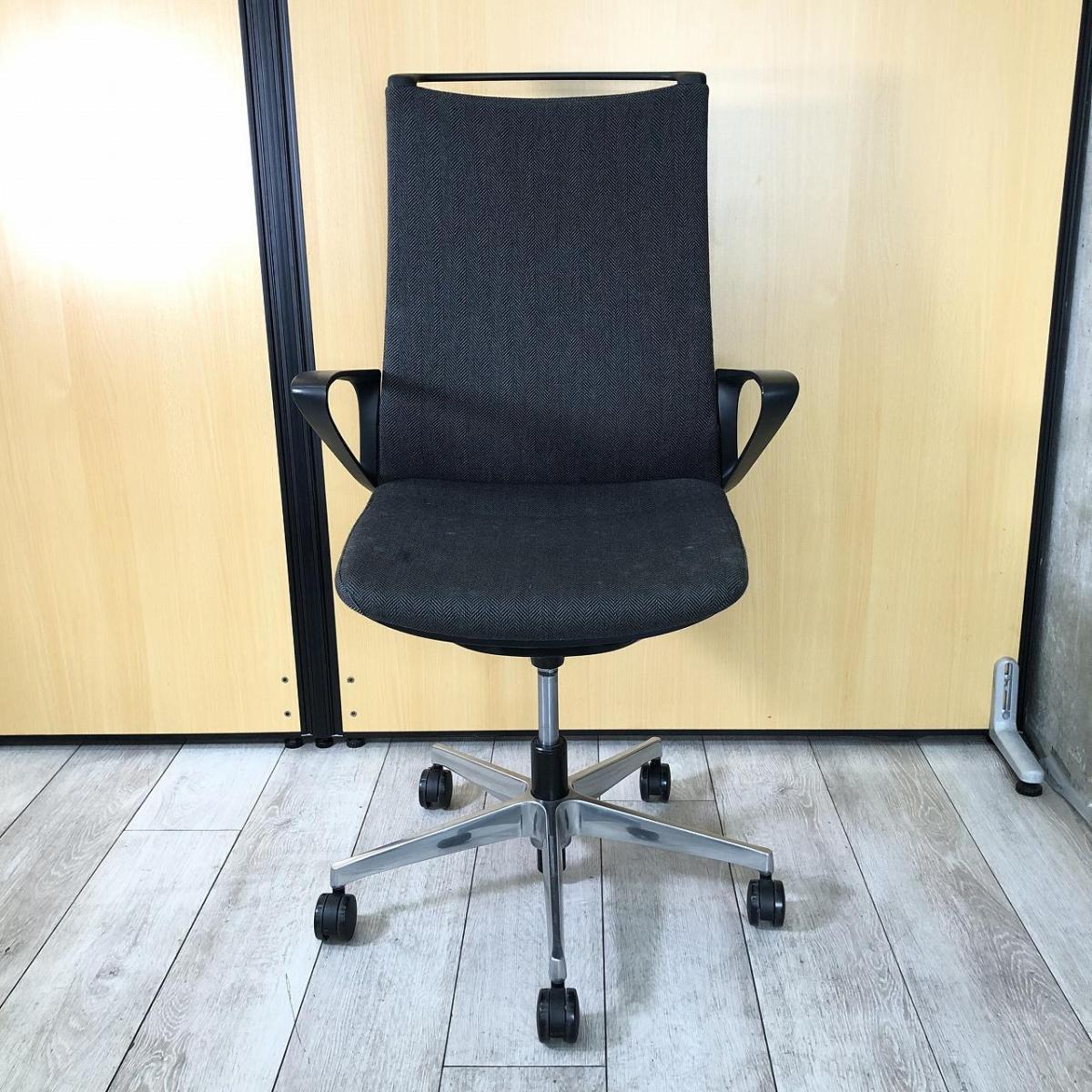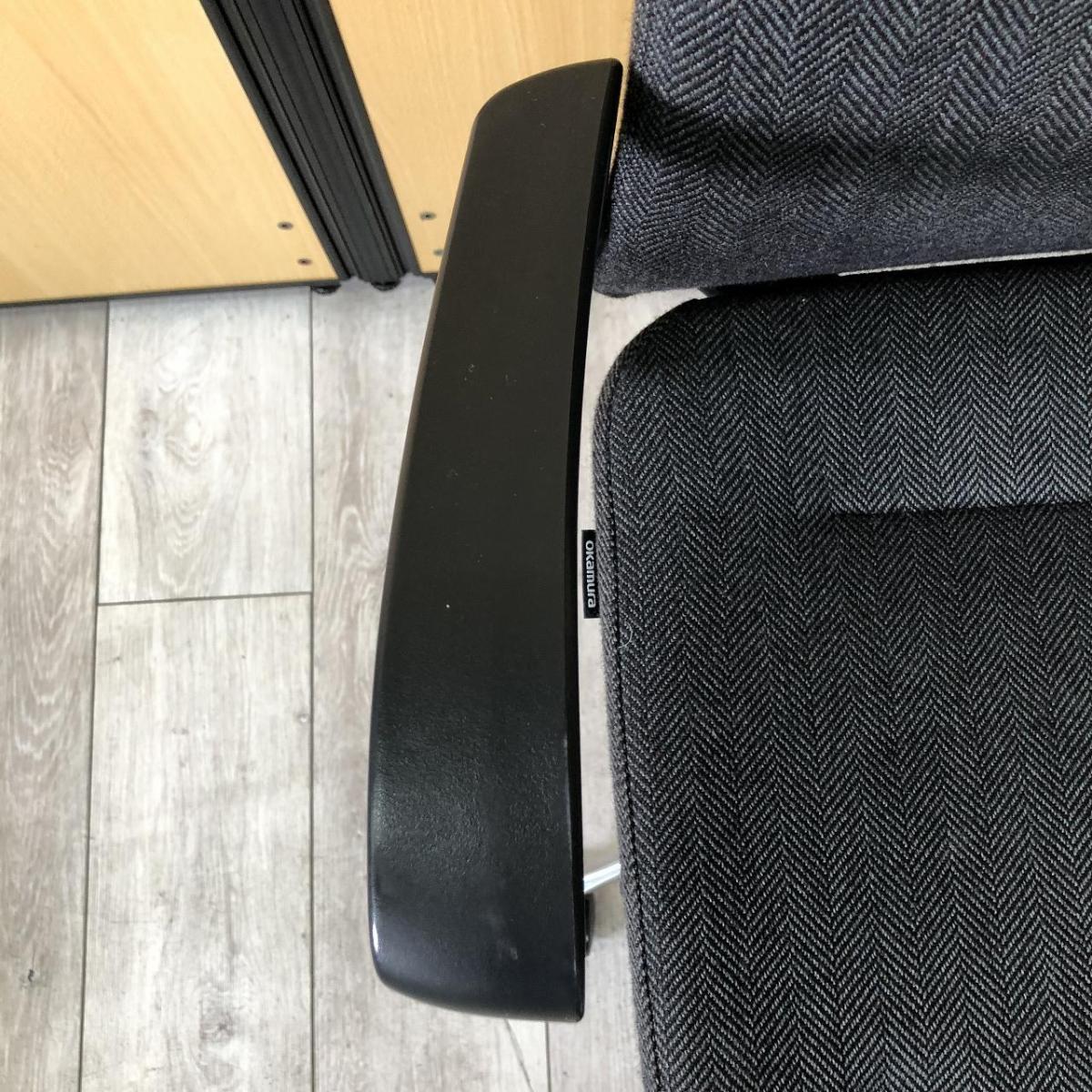 【在庫入替セール品!】スタイリッシュなデザインと確かな座り心地!会議室やモダンなオフィスの執務用としてもおすすめ! インテリア性の高い人気チェア! オカムラ/モード(mode)/ダークグレー デザインアーム フレーム(樹脂) ボディカラー(ブラック) クロス(ヘリンボーン)