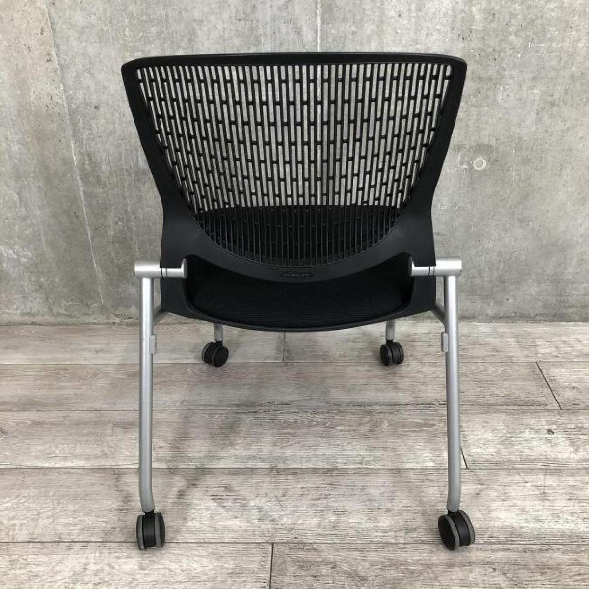 【しなやかにワーカーを受け止める洗練されたデザイン!使わない時は重ねて収納可能!】■オカムラ(okamura)製 グラータ (Grata) 肘無し ミーティングチェア ネスティングチェア ■背面樹脂メッシュ/背パッドなし ■座面:ブラック ■キャスター付