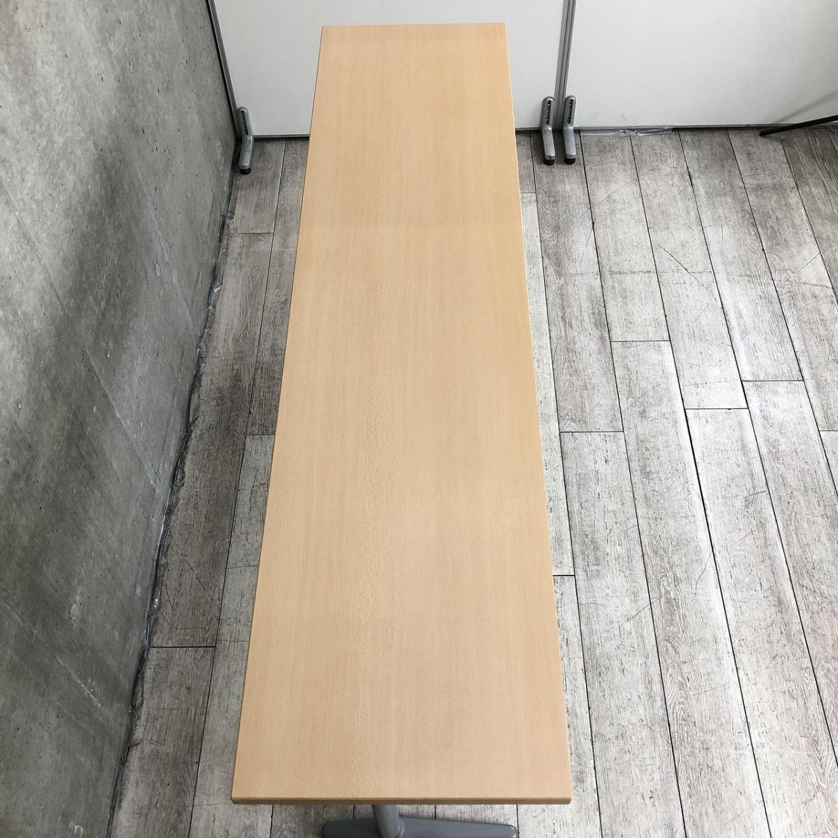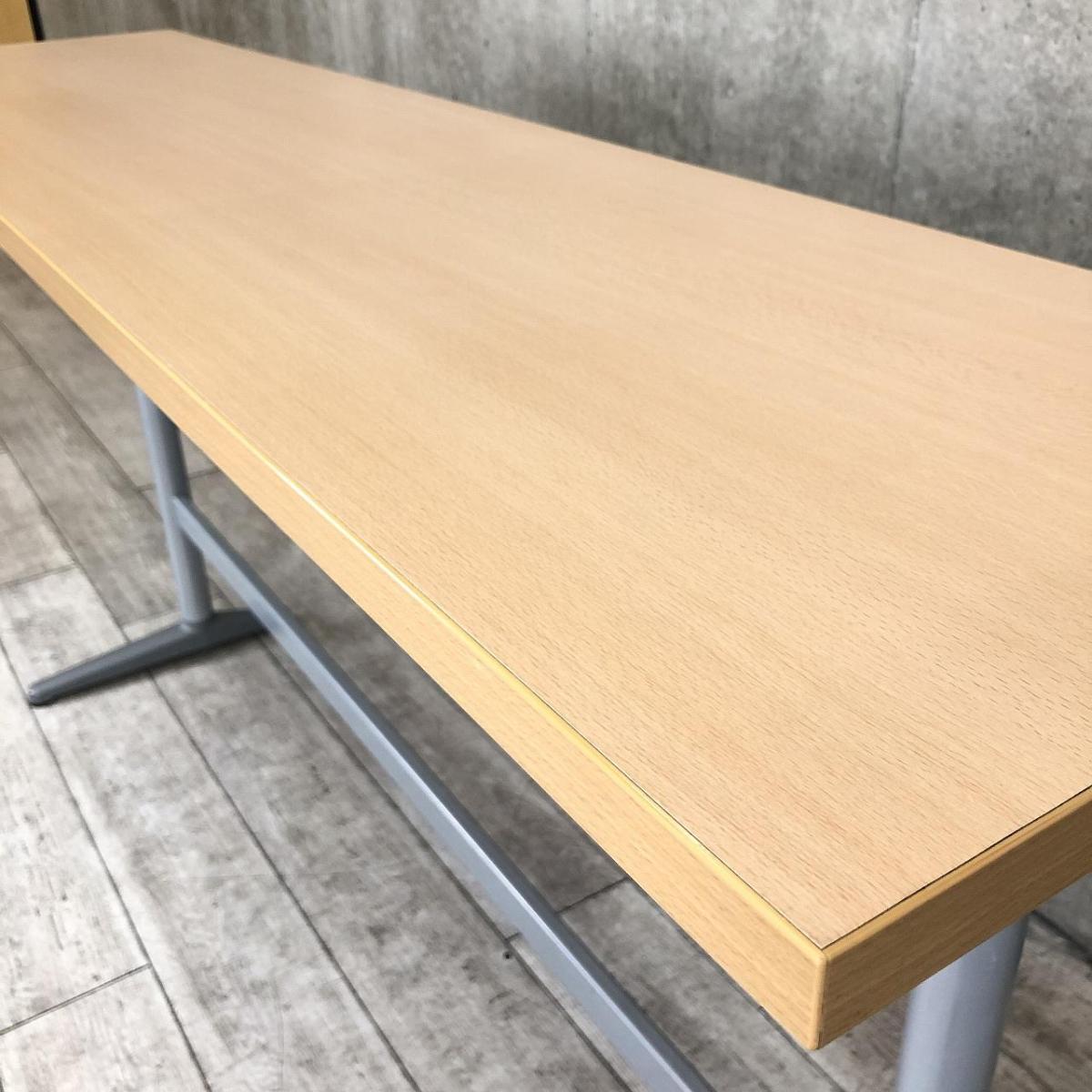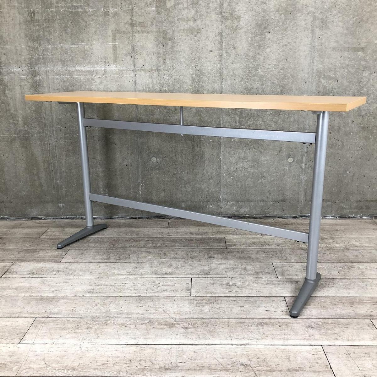 【オフィスの雰囲気ががらりと変わる!高さ950mmのハイテーブル!】■パブリック(PUBLIC)製 ミーティングテーブル 角テーブル ハイテーブル W1800×D450×H950mm ■天板:ナチュラル木目調 T字脚:シルバー- 茨城南店