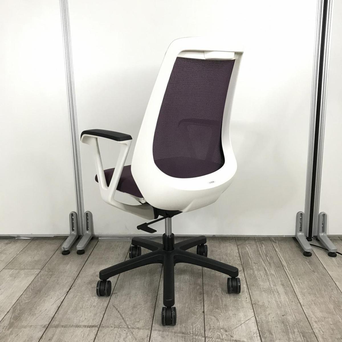 【理想的な作業姿勢をキープ!通気性も良い背もたれメッシュ!】■イトーキ(ITOKI) ノナ(nona)チェア ハイバック 肘付き ■サークル肘 ■背面メッシュ ■プラムパープル × ホワイトシェル×ブラック脚