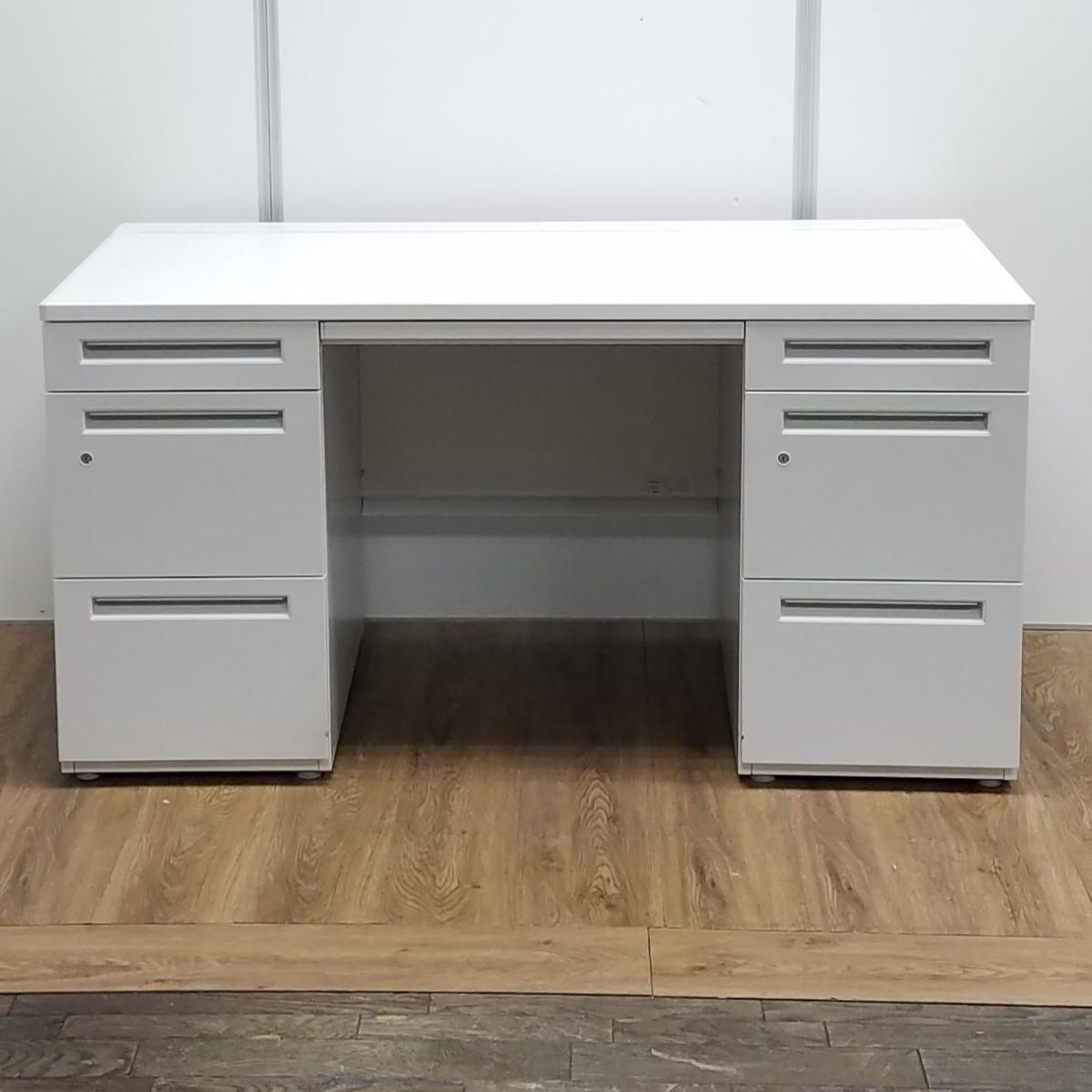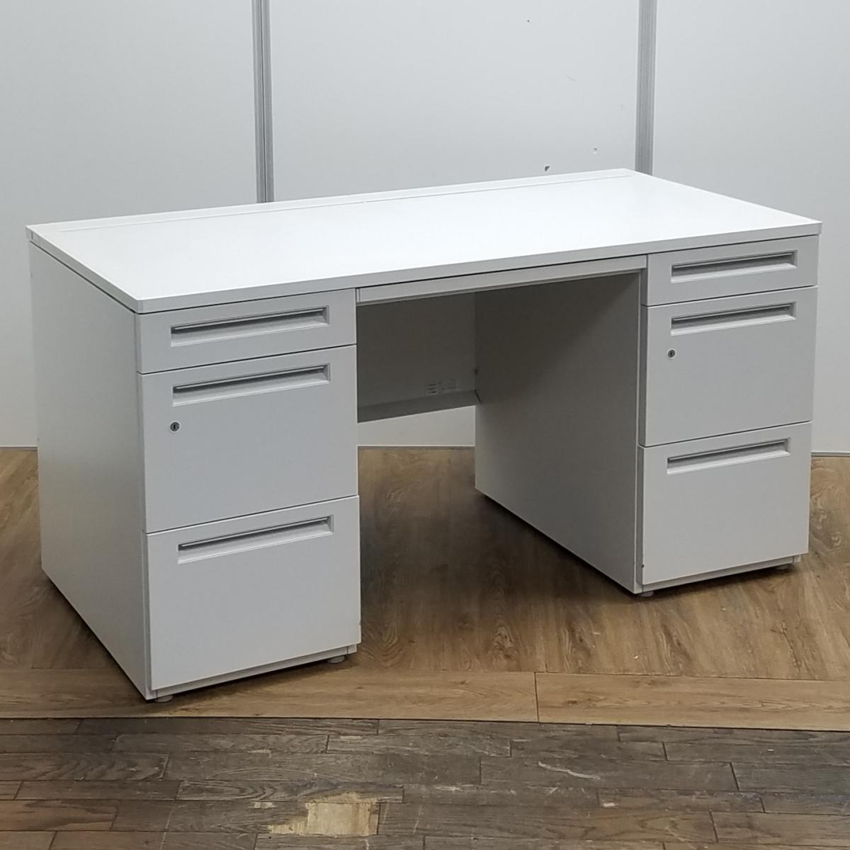 国内メーカー製 W1400mm両袖机 本体ホワイト ※高さ700mm