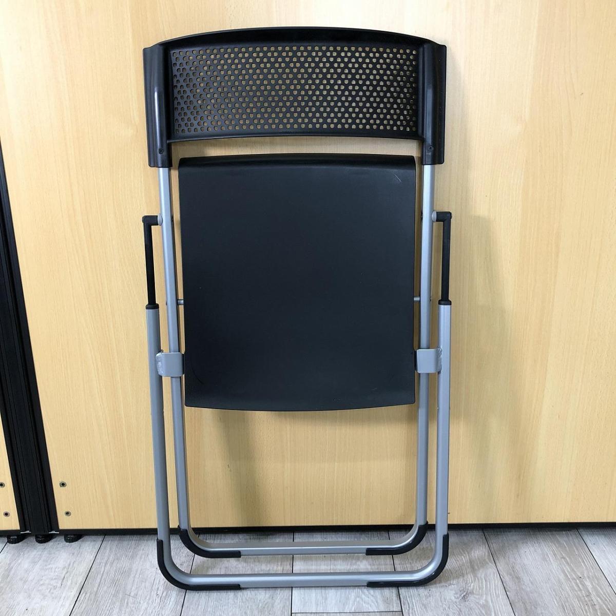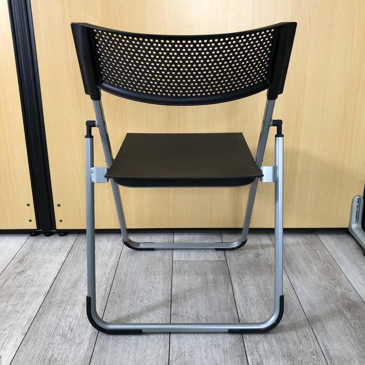 【スタイリッシュなデザインと、安全性を備えた折りたたみチェア入荷!】■オカムラ(okamura)製 8159シリーズ 折りたたみチェア ミーティング リフレッシュスペース ■背面樹脂メッシュ ■ブラック- 千葉店
