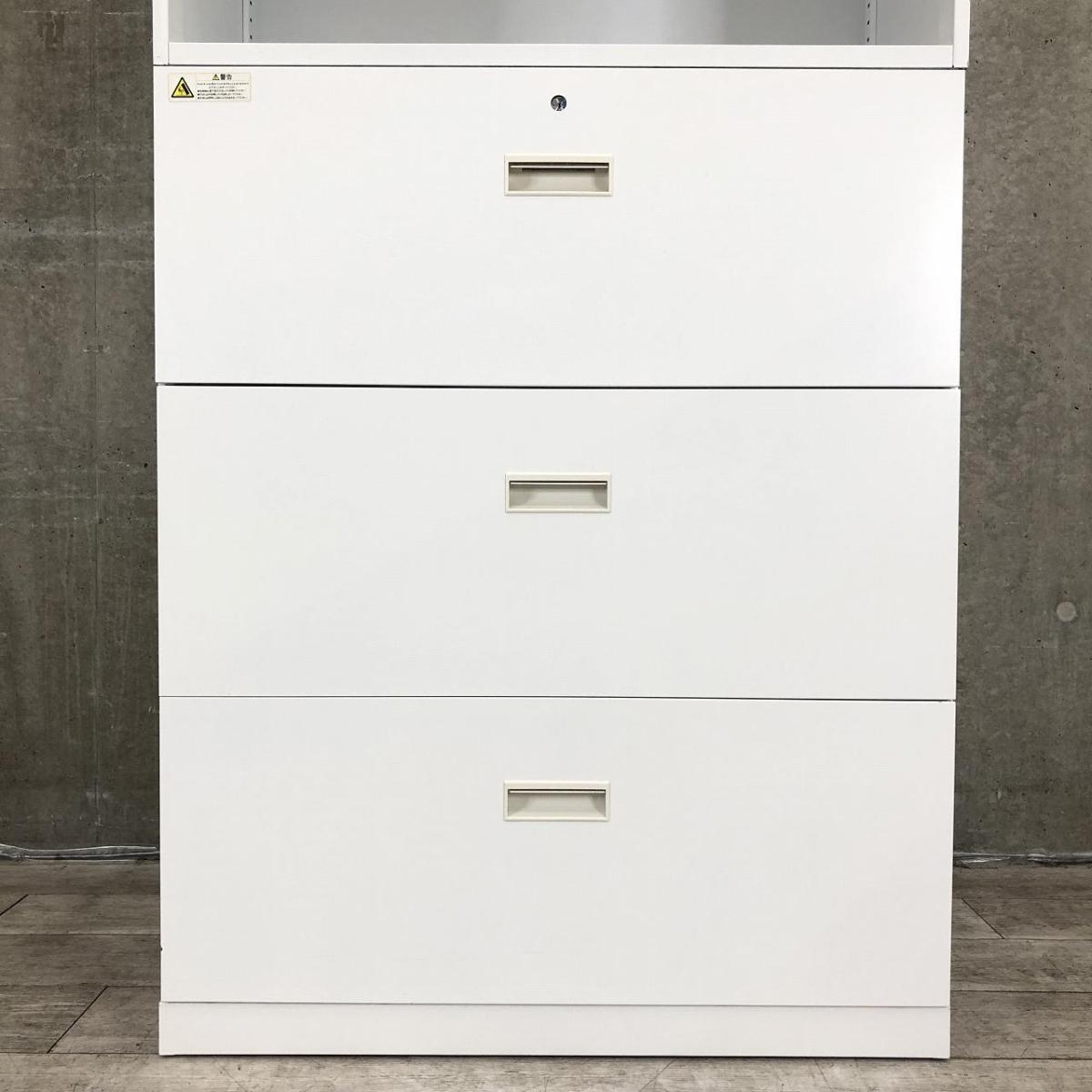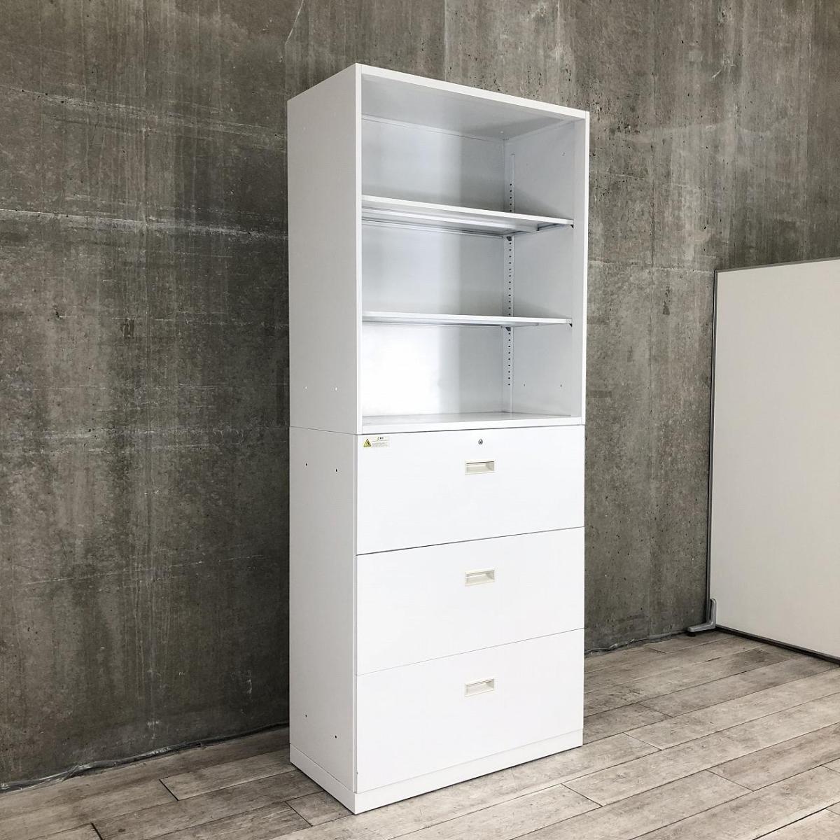 【オフィス書類をたっぷり収納できる、人気の書庫セット】■ウチダ BEストレージ オープン+3段ラテラル 書庫セット W900/D450/H2150 ■シリンダー錠 ■ホワイト- 立川・八王子店