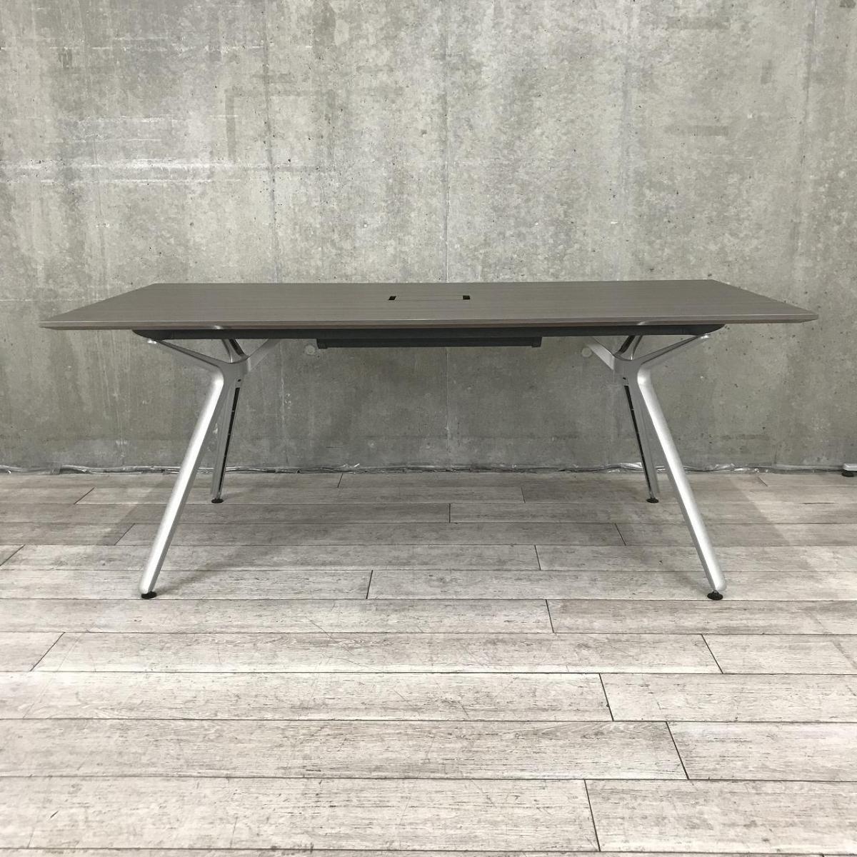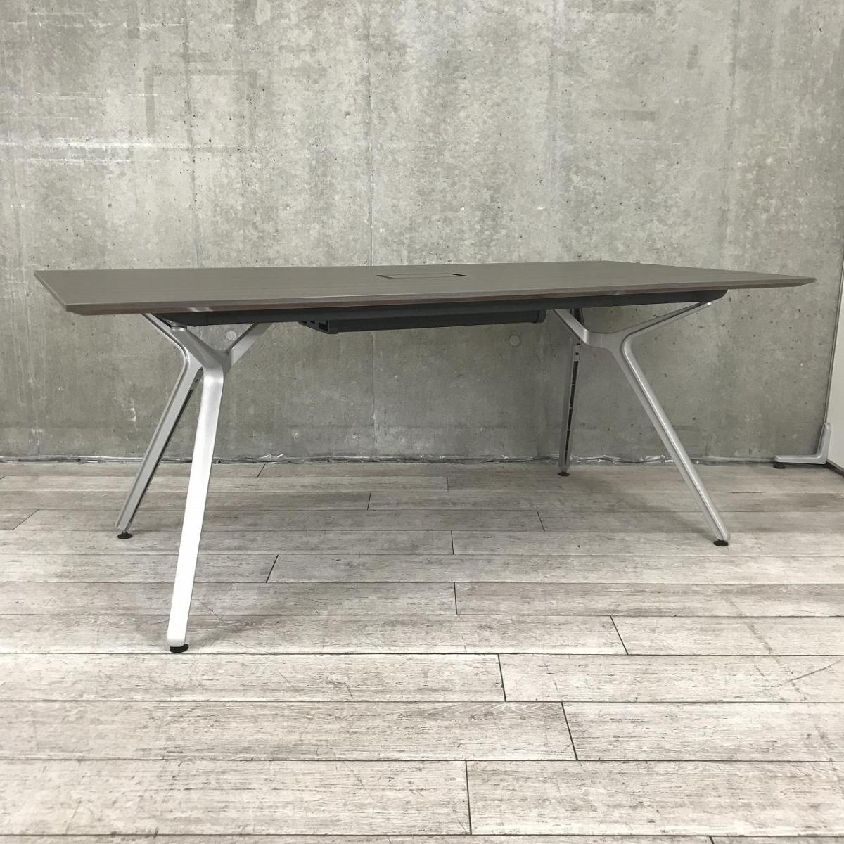 【高級感抜群の幅1800mmの人気ワークデスク!】■イトーキ(ITOKI)製 DZテーブルシリーズ ミーティングテーブル 大型テーブル W1800×D900㎜ ■船底エッジ ■配線カバー付 ■天板:木目ブラウン×脚:シルバー- なんば日本橋店