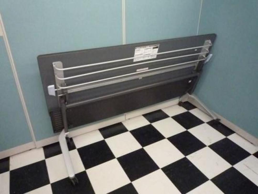 - 一部不具合あり天板歪み、アジャスター無し、キャスター使用不可ようなそのテーブルの本来の効用を果たすための機能以外の一部が使用不可な状態。(例、キャスターロッ ク機能使用不可、棚板無し等がある。)