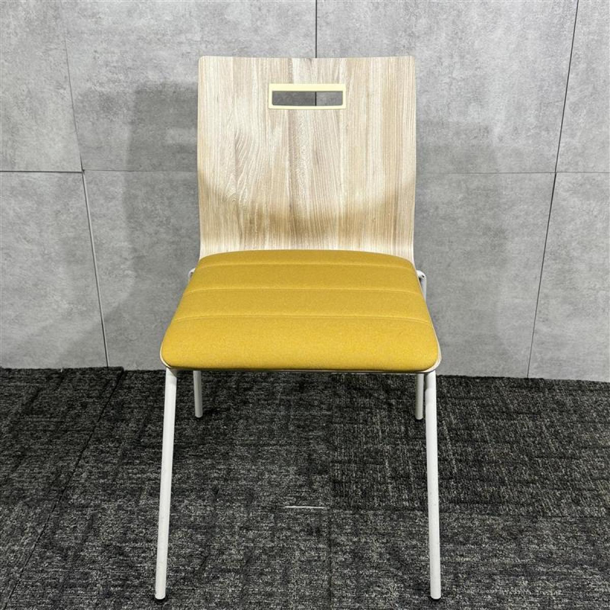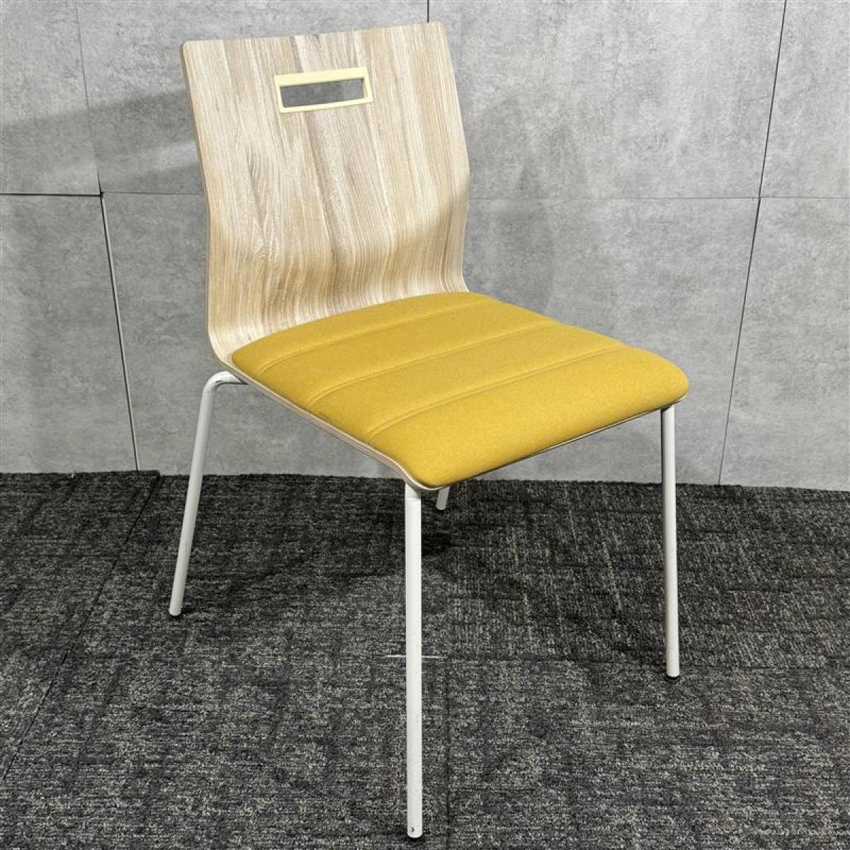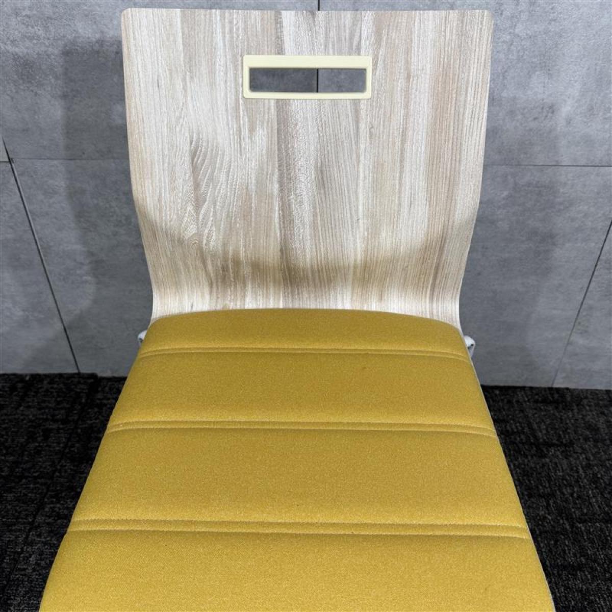 【来客用や自宅にも◎】オカムラ スイープ ミーティングチェア 自宅 来客 ローバック 木目ナチュラル×イエロー オシャレ 中古 オフィス家具 博多 天神 九州最大級- 福岡博多店