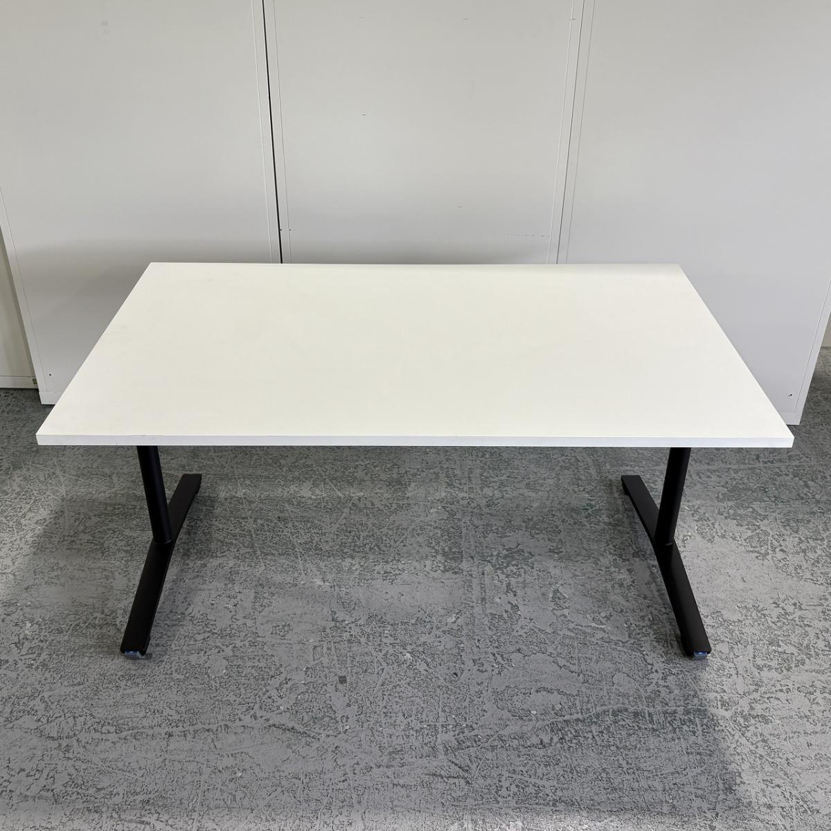 【人気のホワイト天板!使い勝手の良い横幅1500㎜タイプ!2~4人での会議におすすめ!】■コクヨ(KOKUYO)製 ビエナ(VIENA)シリーズ 角テーブル ミーティングテーブル キャスター付 ■ホワイト T字脚:ブラック- 新大阪店