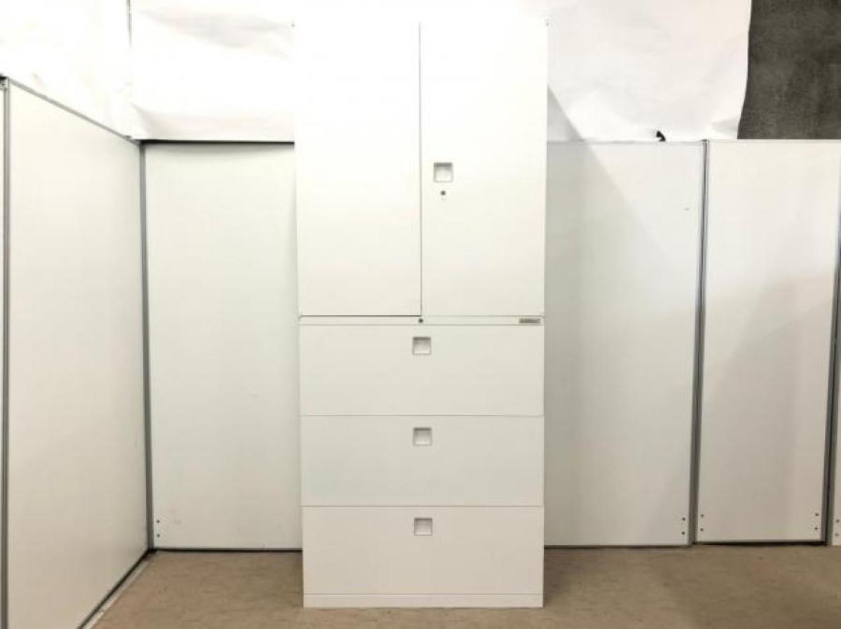 【オフィスの書類をスッキリ整理!大人気レクトラインの上下書庫セット!】■オカムラ(okamura)製 レクトラインシリーズ 両開き+3段ラテラル 書庫セット H2150㎜ ■シリンダー錠 ■ホワイト