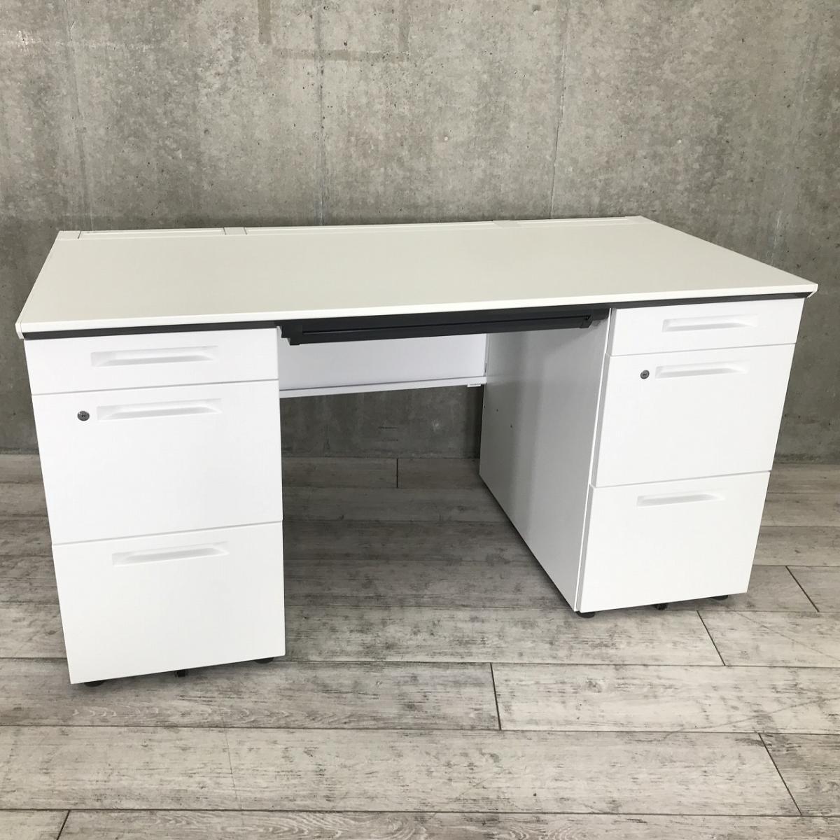 【T11】【商品入替のため、残り4台限り】コクヨ製 アイエス(IS) ホワイト 両袖 デスク W1400xD700xH720サイズ シリンダー 収納スペース充実! 机上をスッキリ整理! 幅広いワークスペースで上長席にもオススメ! W1400両袖机!!