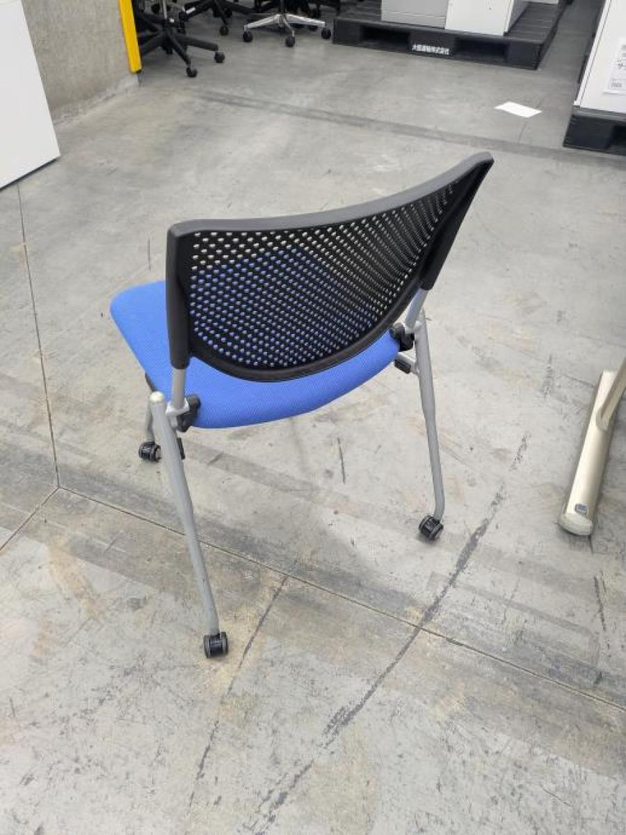 【座面使用感あり】オカムラ製 プロスタック プレーンタイプ 背面樹脂メッシュ ブルー×ブラック コンパクトに積み重ねて収納 ネスティングチェア!!