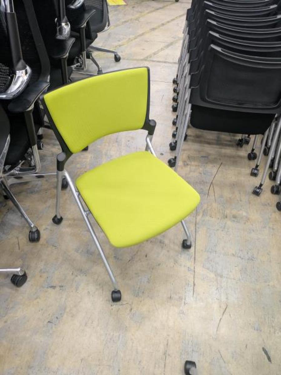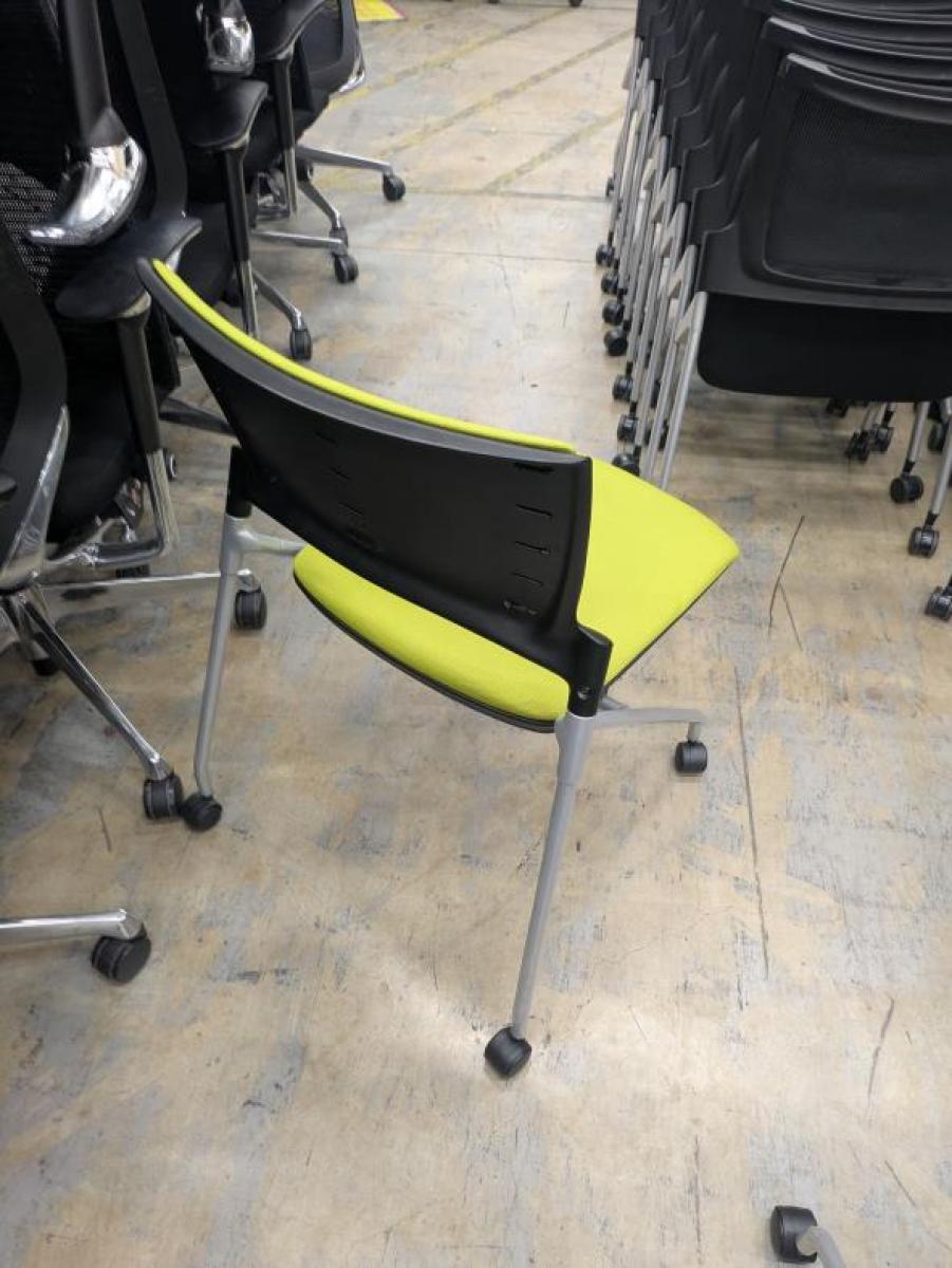 【在庫入替セール】【4脚限定】【平行ネスティングで省スペース化!】■イトーキ(ITOKI)製 マノスチェア(MANOSS)肘無 ネスティングチェア ミーティングチェア ■背パッド キャスター付 ■アイビーグリーン×ブラックシェル