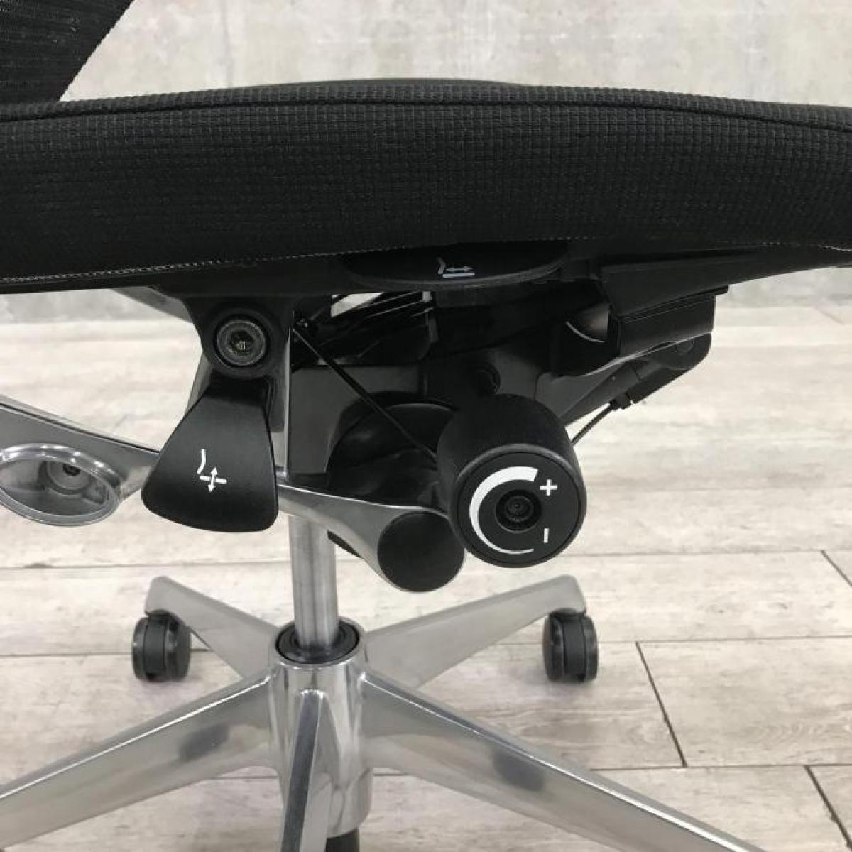 座面のすぐ右下にあるレバーの操作にて、座面位置の上下調整(100mm)が可能です。
