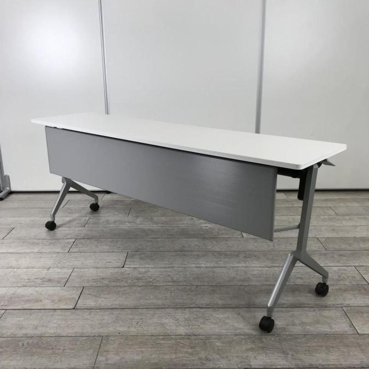 【軽快な使い心地!スペースを有効活用!】■コクヨ(KOKUYO)製 リーフラインシリーズ(Leafline) サイドスタックテーブル ミーティングテーブル フラップテーブル ■幕板付き ■幅:1800mm ■ホワイト- 名古屋本店