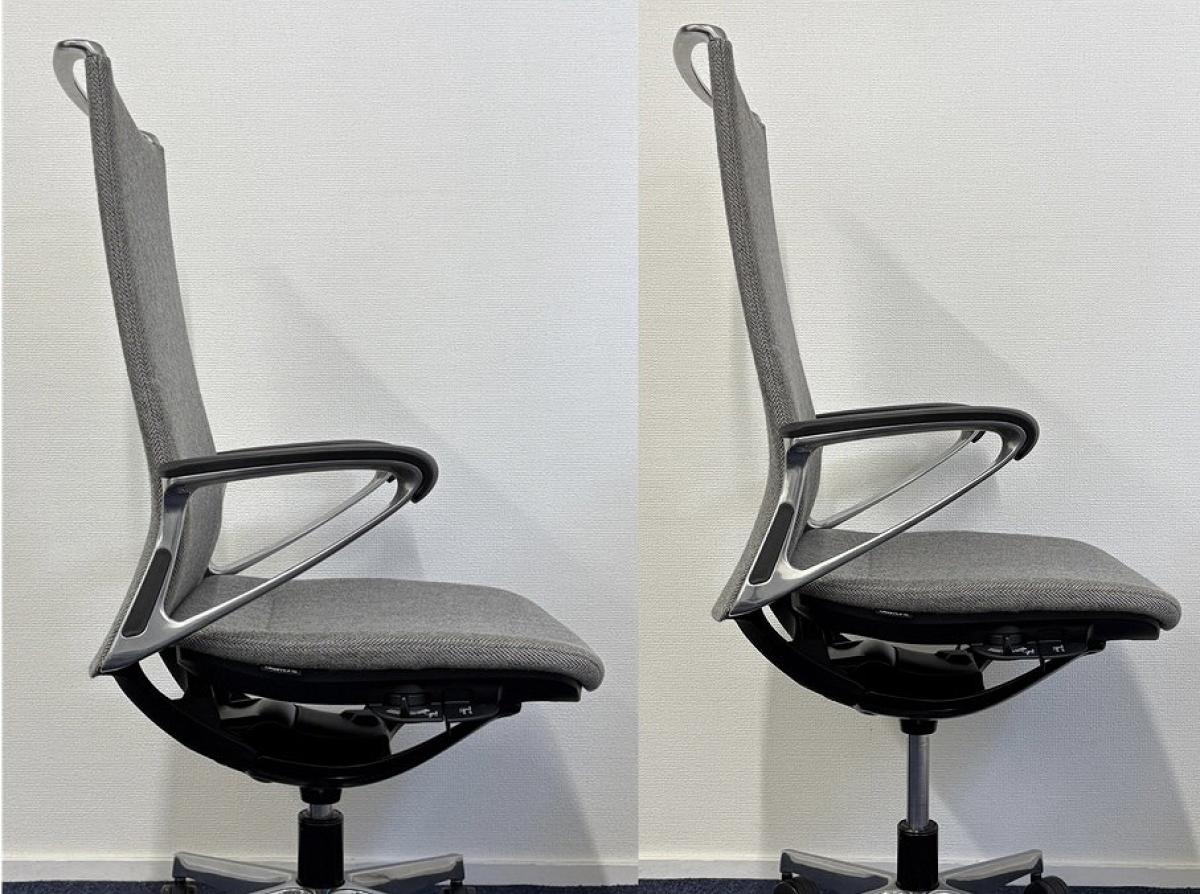 - 座面の高さ調節や背と座がシンクロしてスライドするアンクルチルトリクライニングなど、基本的な調節機能を搭載。