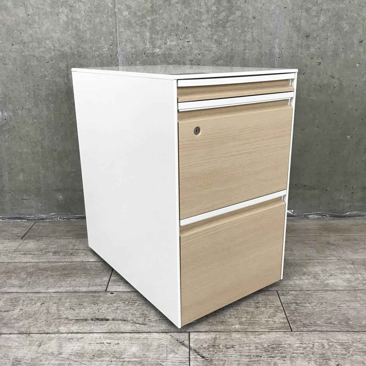 【珍しい表面ナチュラル木目調のおしゃれなワゴン!】■オカムラ(okamura) プロステージクレストシリーズ 3段ワゴン H640㎜ ■色:本体/ホワイト 正面/木目調ナチュラル ■シリンダー錠 【平机・フリーアドレスデスクのお供に!】【弊社使用欄:A01023574】【ID】在庫がある店舗一覧