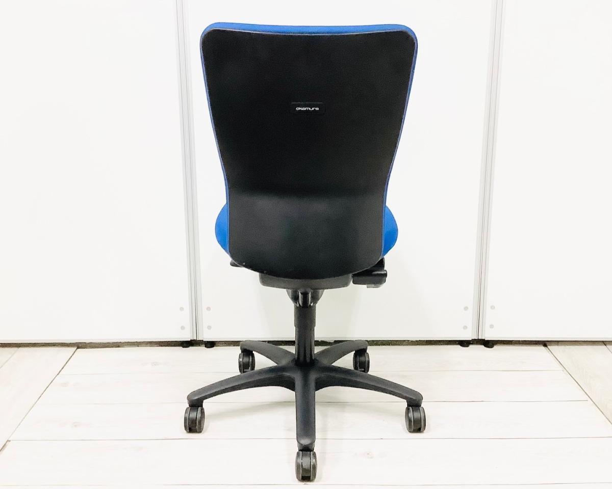 【長年愛されるロングセラー商品!厚めのクッションで疲れにくい!】■オカムラ(okamura)製 カロッツァチェア 肘無ハイバック ■サークル肘 ■ブルー×グレーシェル