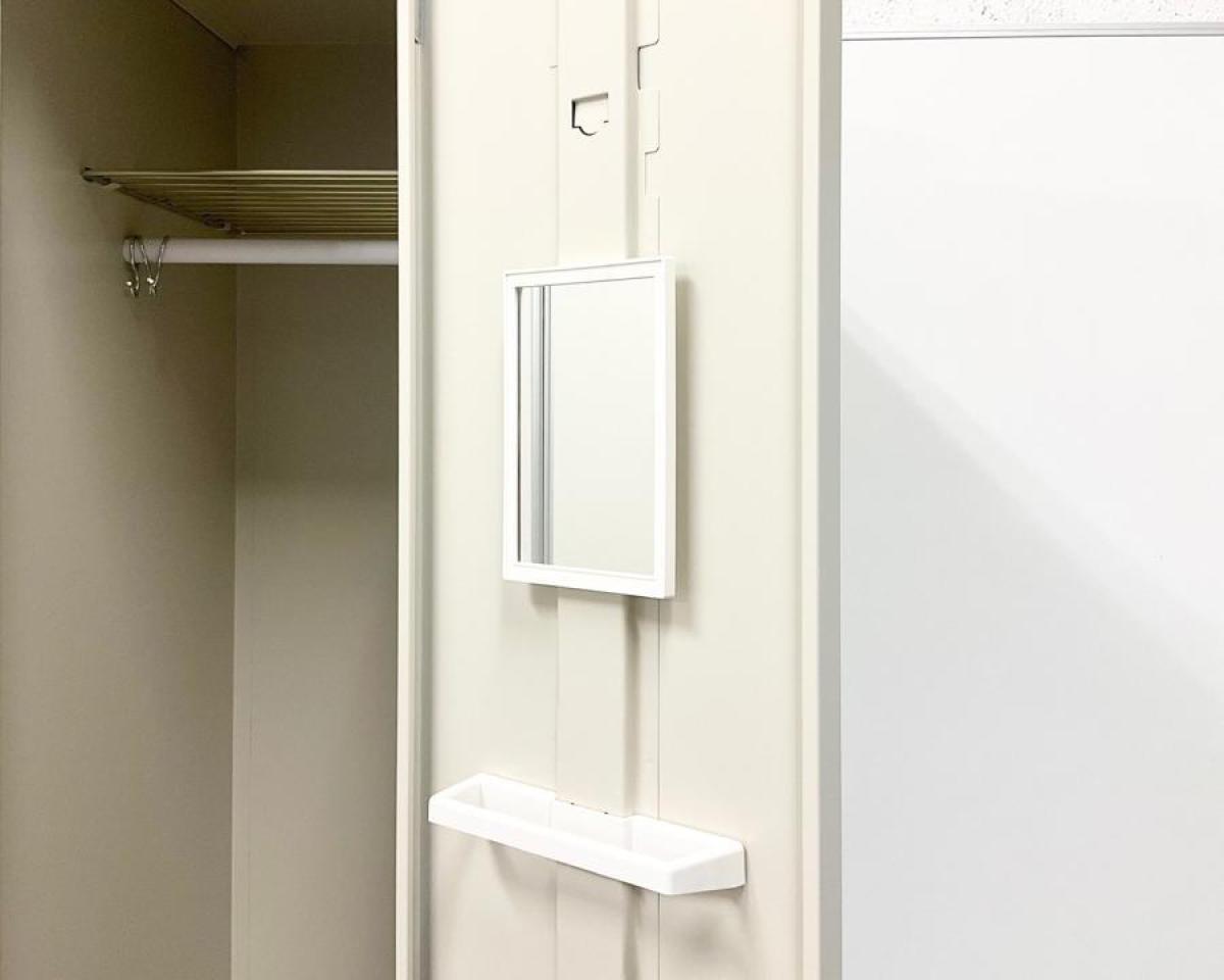 - ほぼ付いてない鏡、ネクタイ掛け、傘立て、網棚、フック等がほぼ付いてない。