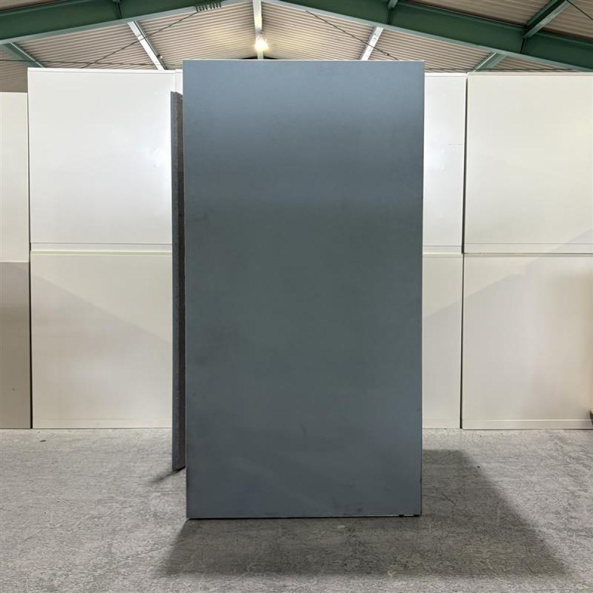 【T10】【商品入替のため、残り1台限り】オカムラ製 ドレープ(drape) ライトブルー × グレー 集中ブース ソロワークブース W1100/D1100/H1920サイズ 天板:高さ720サイズ ワーカーの集中を高める省スペースなワークブース! 1人用ブース!!