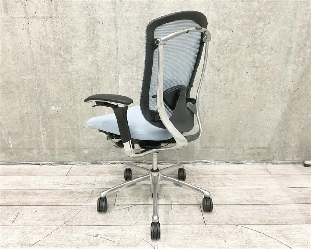 【王道チェア!】■オカムラ製(okamura) コンテッサ (Contessa) ハイバック 肘付き ■ライトブルー ■背面メッシュ ■ランバーサポート付 ■可動肘