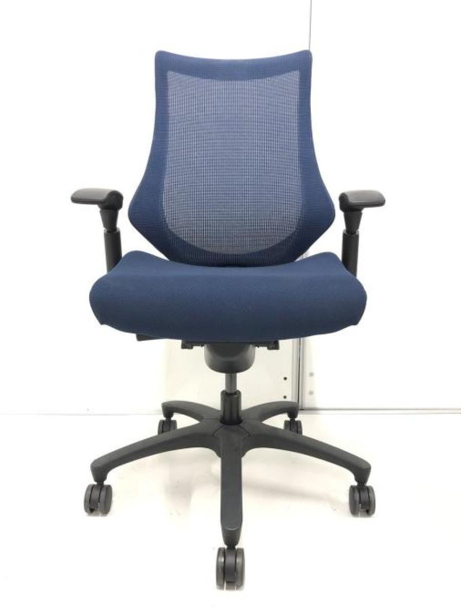 【最先端のデザインに快適な座り心地!】■イトーキ製 エフチェア 可動肘付 ネイビーブルー ■三次元フォルムが腰にフィット!【在庫入替セール品(本在庫限定価格)】