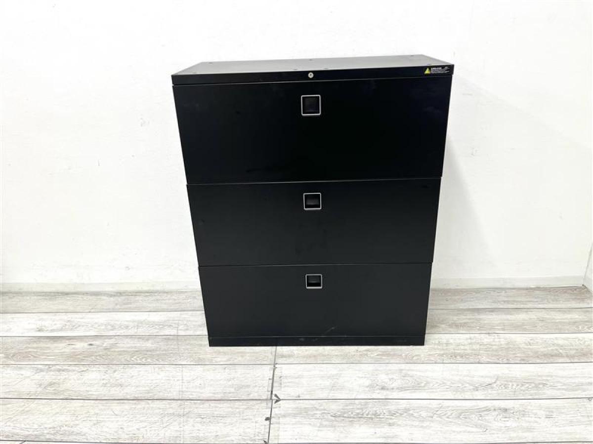 【超レアなブラック色!】オカムラ製/レクトラインシリーズ珍しいブラックカラー/ブラウン天板付き/3段ラテラル【BKNA】