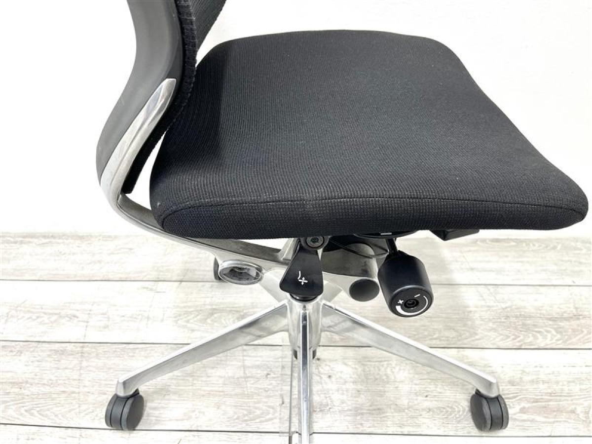 もちろん座り心地もコンテッサの直系ですから快適です。座面の素材はクッションとメッシュの2タイプあります。私、個人的には座面の中心部分でも外側でもテンションが変わらないクッション素材が、足を閉じても開いても快適なので推しです!"