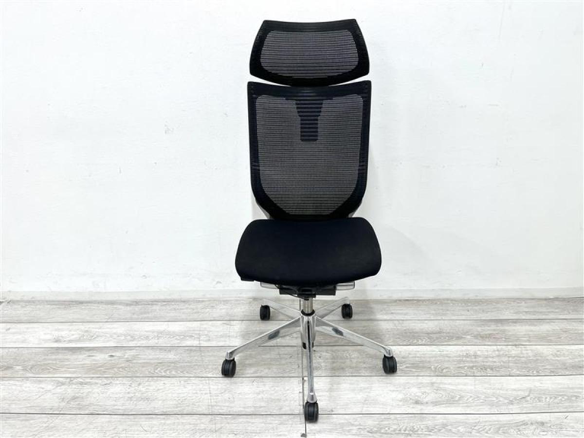 【定価約20万円】【レアなヘッドレスト付チェア!役員のかたや在宅ワークの方などにおすすめ!】■オカムラ/バロンチェア ■背面メッシュ ■ブラック ■肘無 ■ヘッドレスト付サーキュラーバリューCO2削減量の算出について