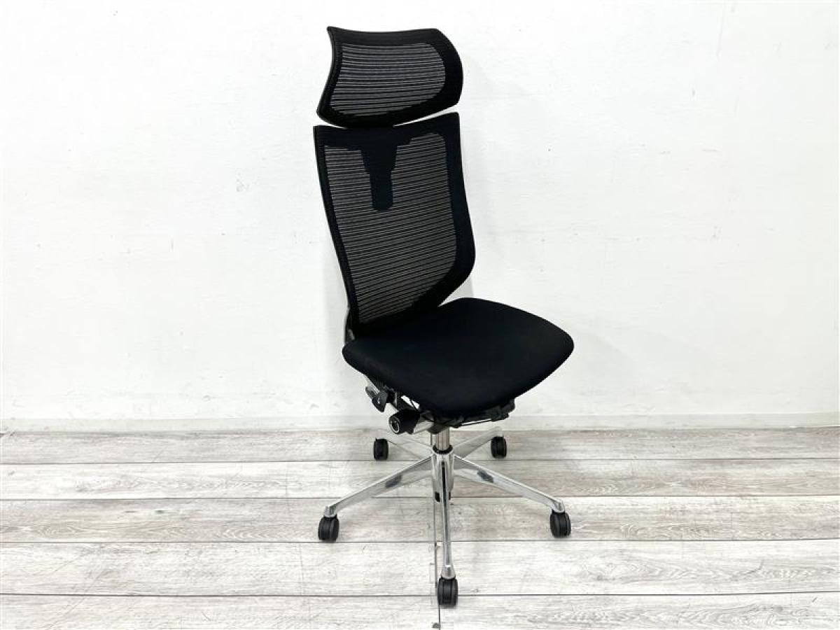 【オフィスの執務室、会議室におすすめ!】■オカムラ(okamura)製 バロン(Baron)チェア 肘付き ハイバック ■背・座面メッシュ ■可動肘 ■ヘッドレスト付き ■ブラック【硬めの座面が大人気!国産メッシュチェアの代表格!】