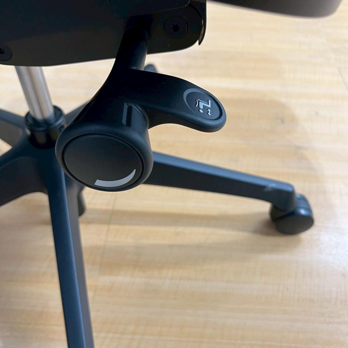 - 座面右下のダイヤル操作で、リクライニングの強弱調整が行えます。これまでのダイヤル式よりも、少ない回転数で、最弱?最強の調整が可能です。