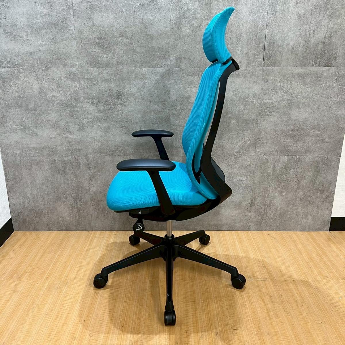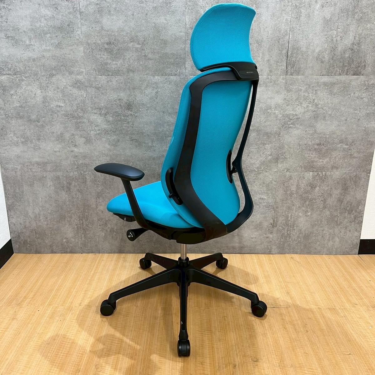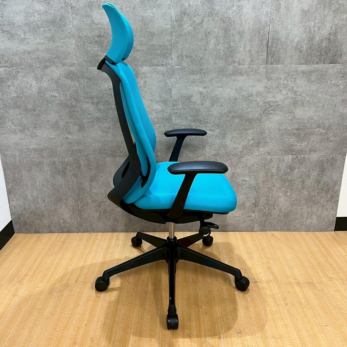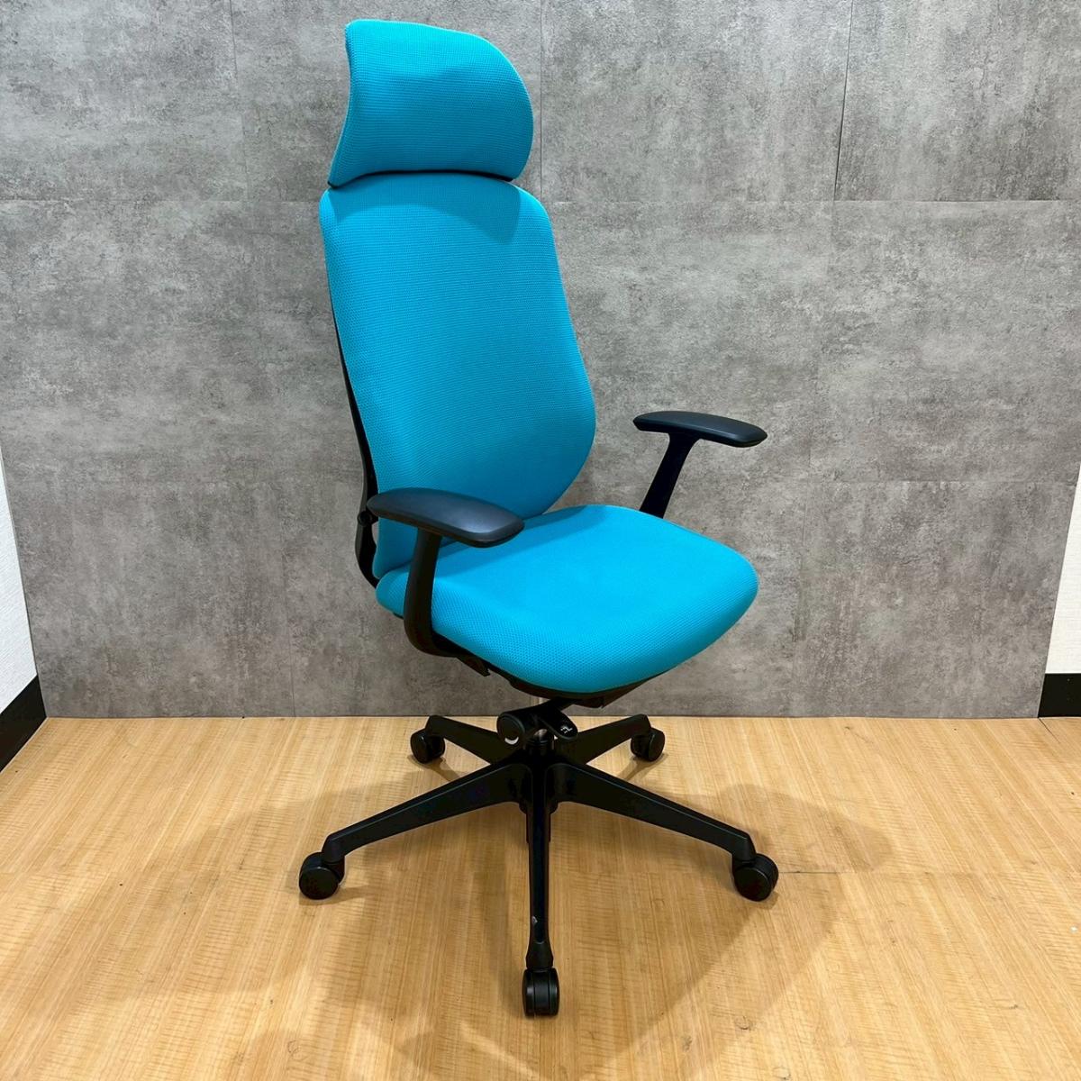 【いま人気のワーキングチェア!】■オカムラ シルフィーチェア 肘付 ブルーグリーン ヘッドレスト付 エクストラハイバック ■背のカーブを変えられる新感覚のオフィスシーティング!【Okamrua Sylphy】★