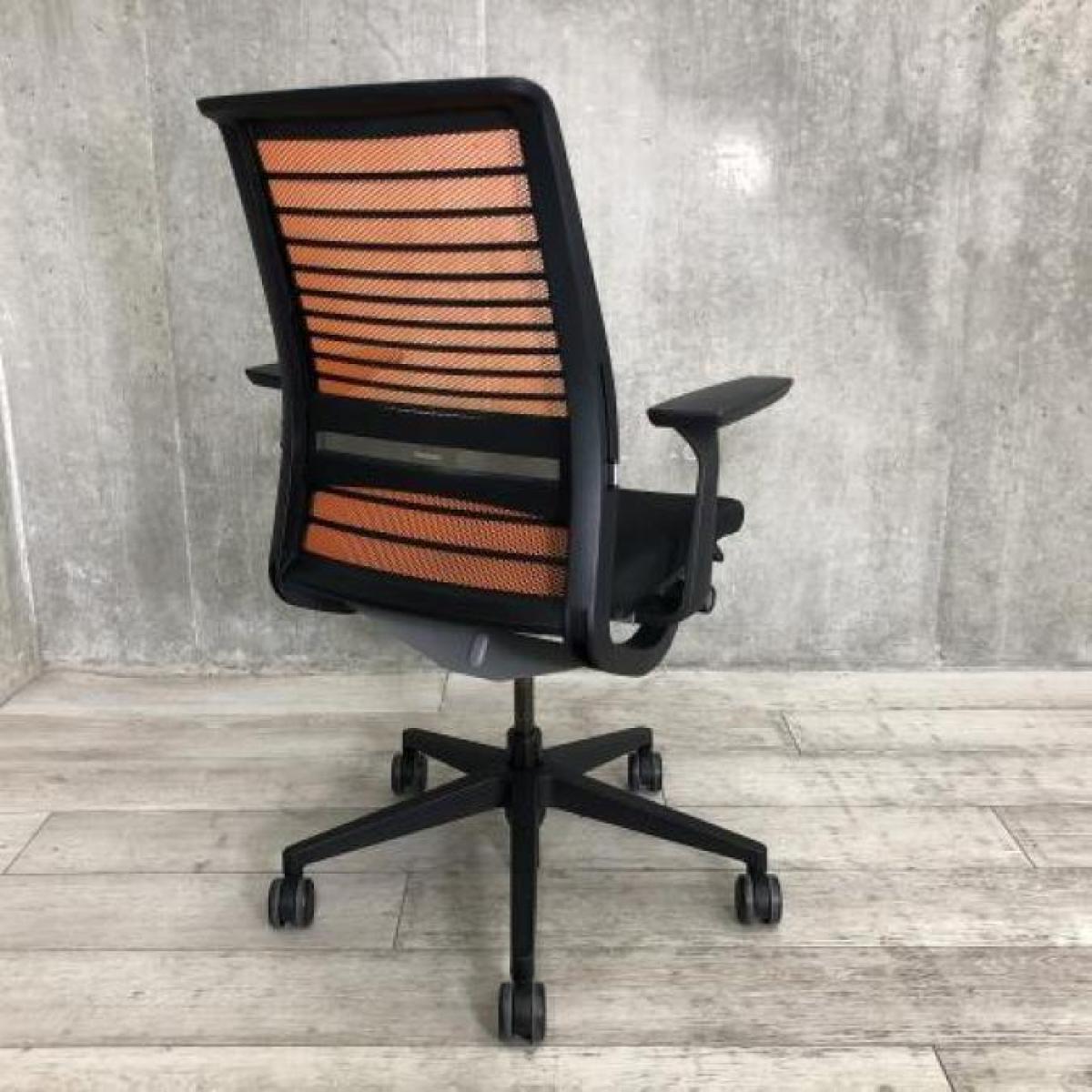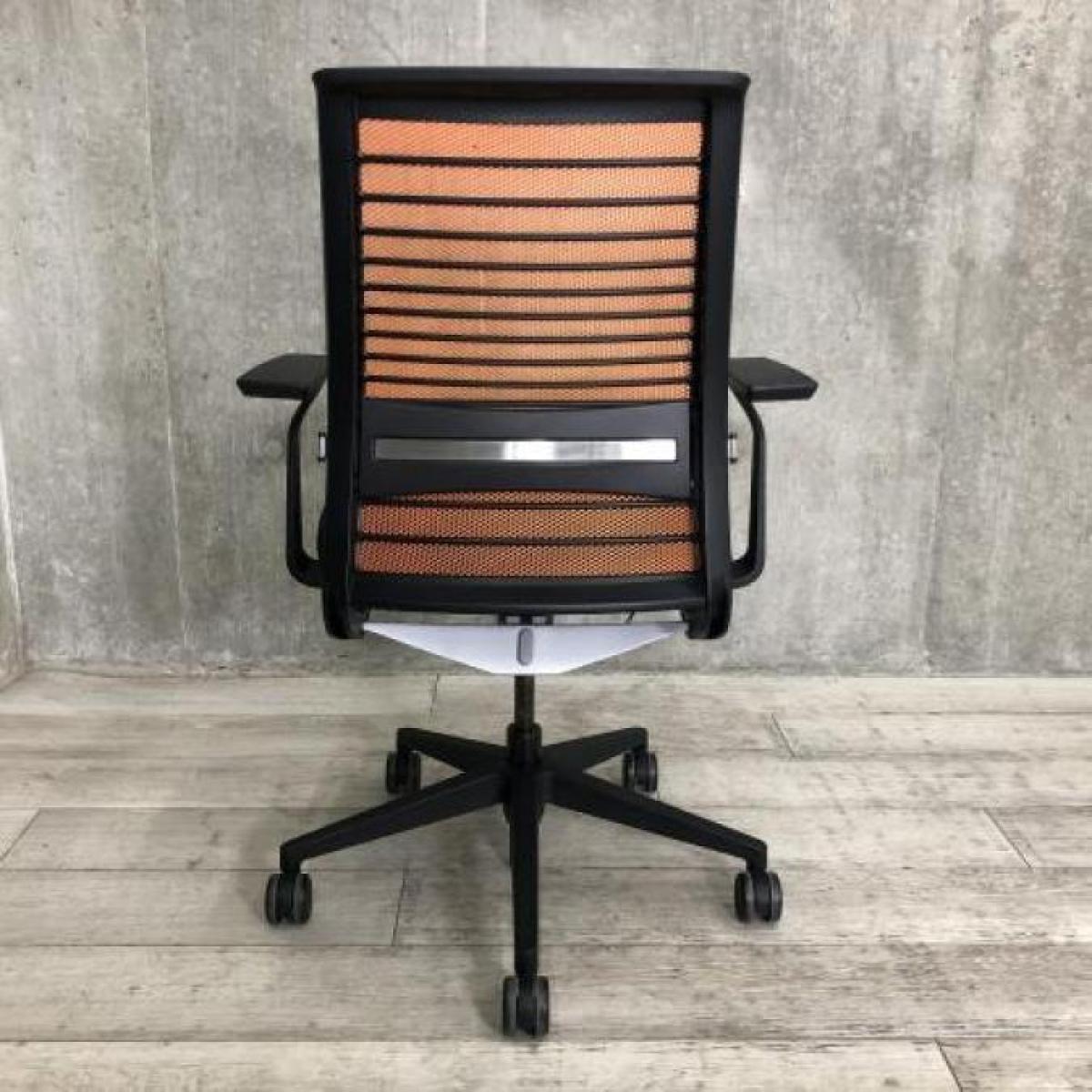 【定価約16万円】【ワイヤーが体にフィットするアメリカ発の大人気商品!長時間の着座ストレスを軽減!】 ■スチールケース(Steelcase)製 シンク(think)チェア 肘付き ハイバック ■メッシュバック ■固定肘/ランバー付 ■背面:オレンジ/座面:ブラックサーキュラーバリューCO2削減量の算出について