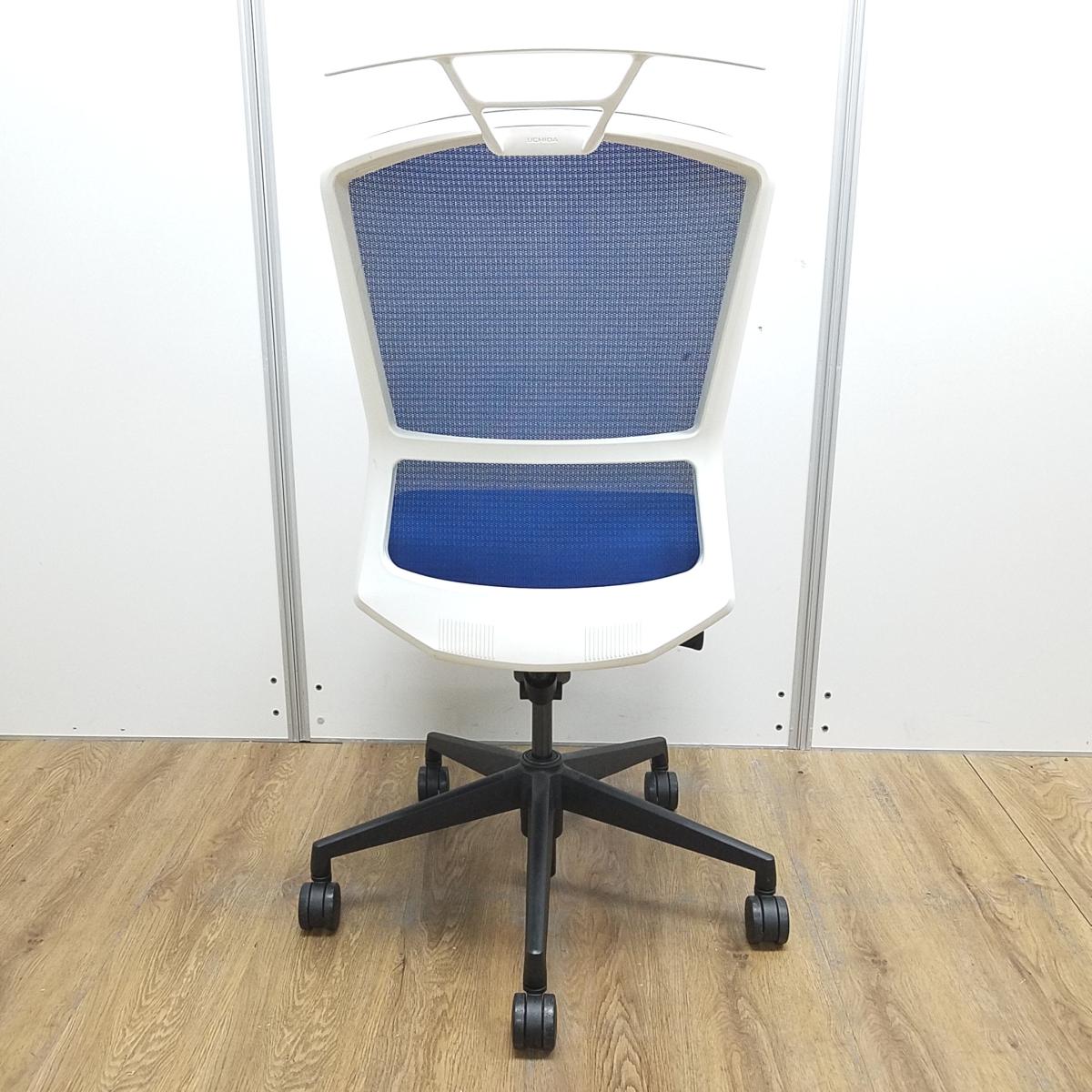 ★【T10】【商品入替のため、残り1脚限り】ウチダ製 エルフィシリーズ マリンブルー ホワイトフレーム 背面メッシュ コートハンガー付 ワンランク上の座り心地! 人間工学に基づいた快適なオフィスチェア 肘無しハイバックチェア!!サーキュラーバリューCO2削減量の算出について
