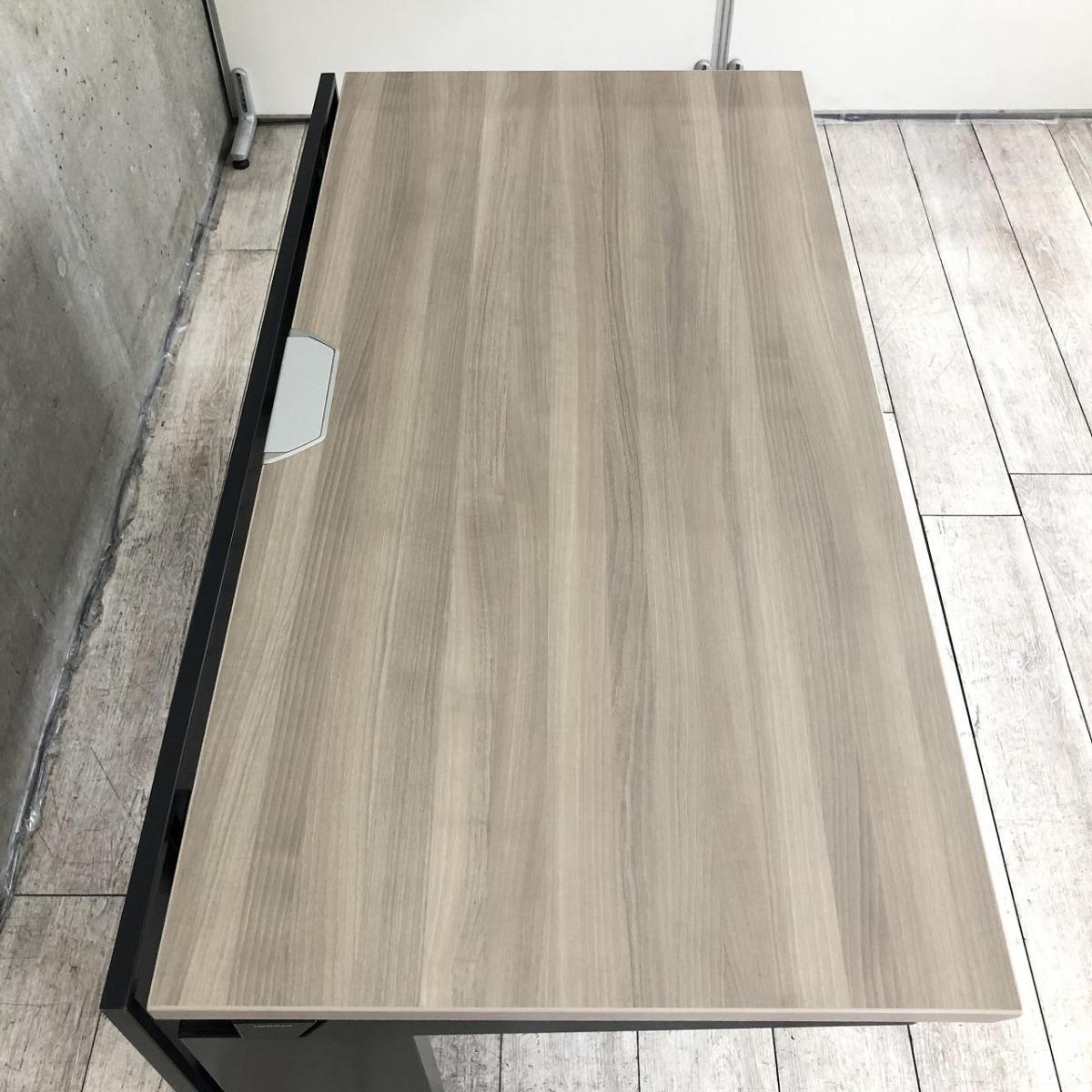 【スタイリッシュなデザインと機能性を兼ね備えたシンプルデスク!】■オカムラ(okamura)製 プロユニットシリーズ 平机 引き出し無 L字脚 W1400×D730㎜ ■天板:木目ダーク/ブラック【弊社使用欄:A00998895】サーキュラーバリューCO2削減量の算出について