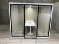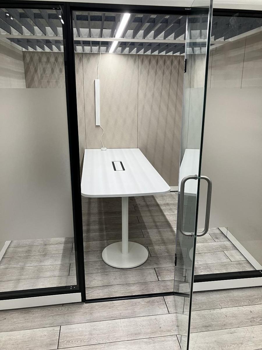 四方を囲うセミクローズ型のブースとして、外界の音や視線を遮り、