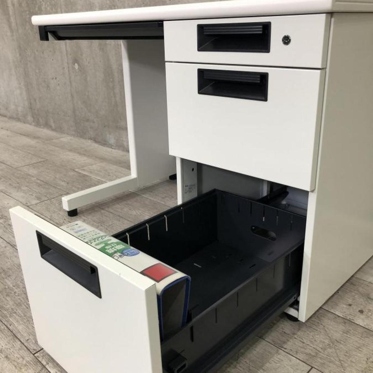 【収納とワークスペースの両立!コンパクトな片袖机が入荷!】プラス(PLUS) 片袖机 横幅1000㎜ ホワイト【AD】- 在庫数