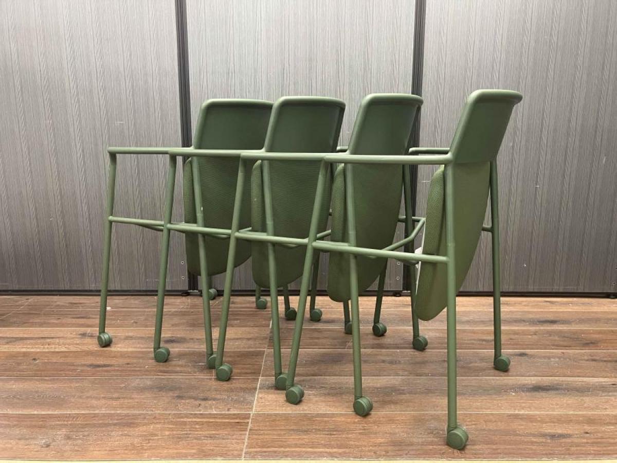 【在庫入れ替えSALE】【スタイリッシュデザインのミーティングチェア!】■コクヨ (KOKUYO) エニー (Any) ネスティングチェア 平行スタッキング 肘付き ■キャスター付き グリーン(岐阜店)- 名古屋本店