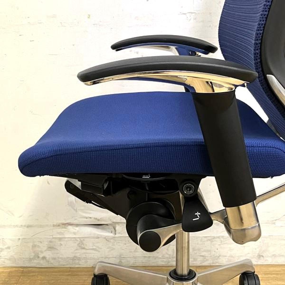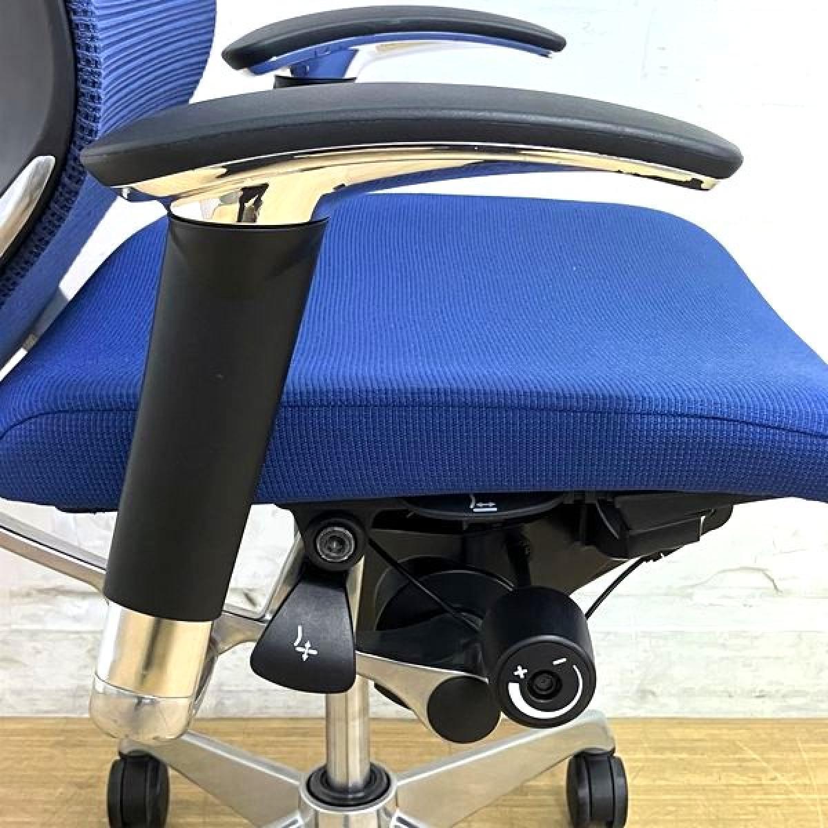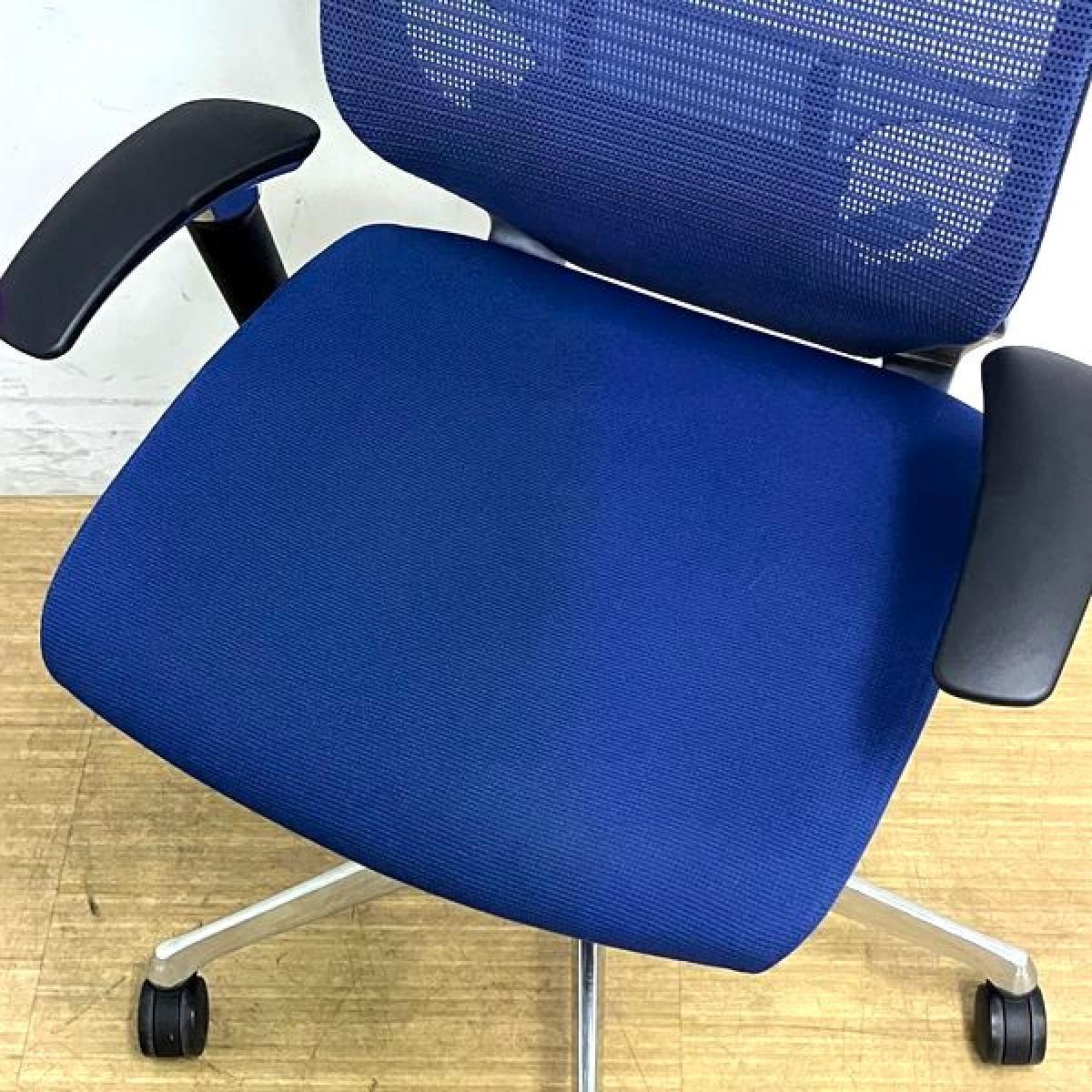 オカムラ バロン ハイバックモデル 背:メッシュ 座:クッション 張地:ミディアムブルー 脚:ポリッシュ アジャストアーム・ランバーサポート搭載- 名古屋千種店