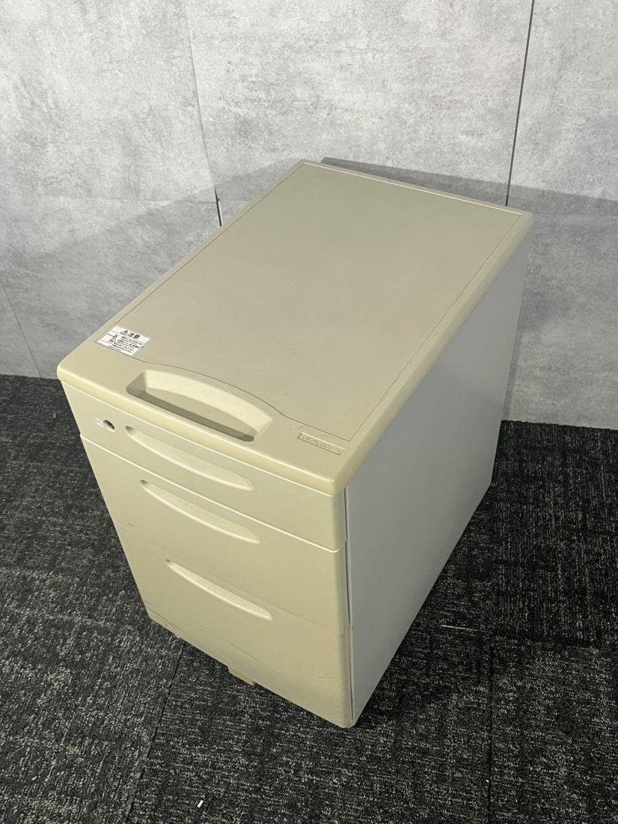 【天板の把手とキャスターで移動がらくらく!シンプルでスタンダードな3段ワゴン!】■オカムラ(okamura)製 SDシリーズ 3段ワゴン デスクインワゴン H610mm ■ライトグレー ■シリンダー錠