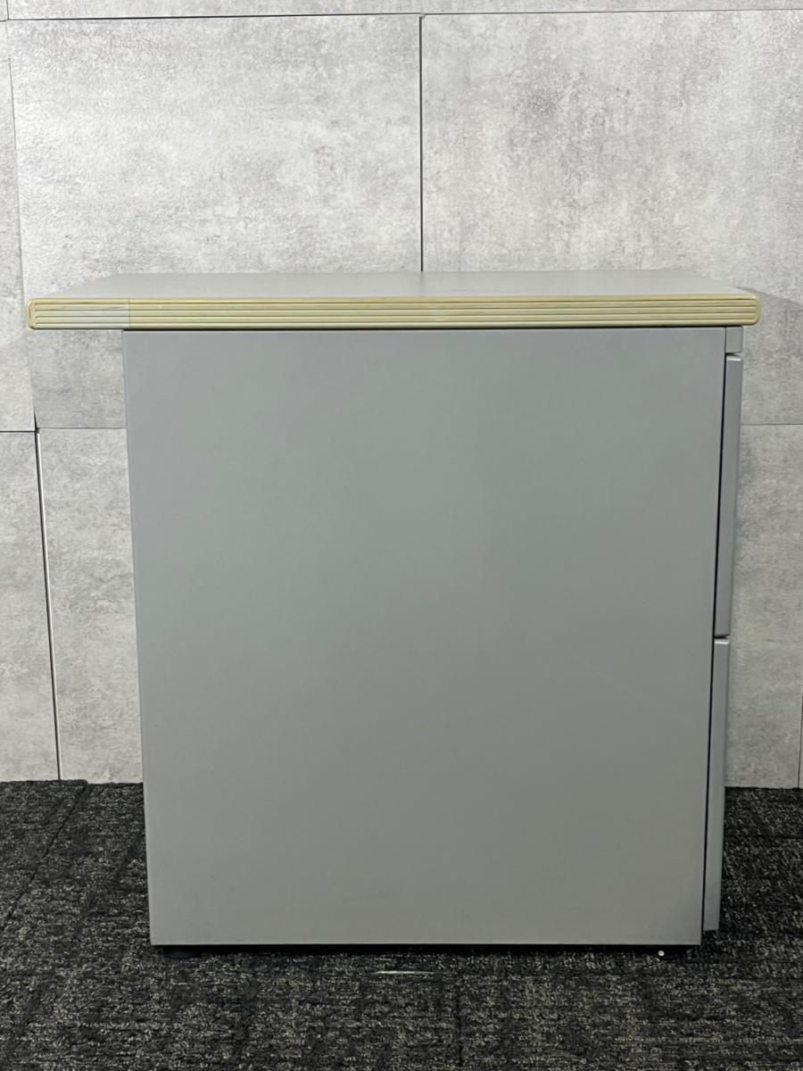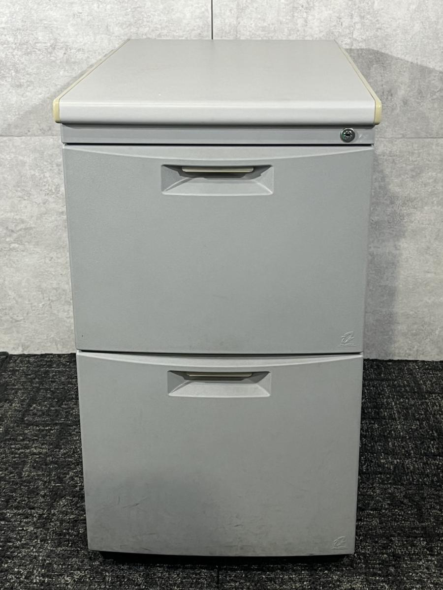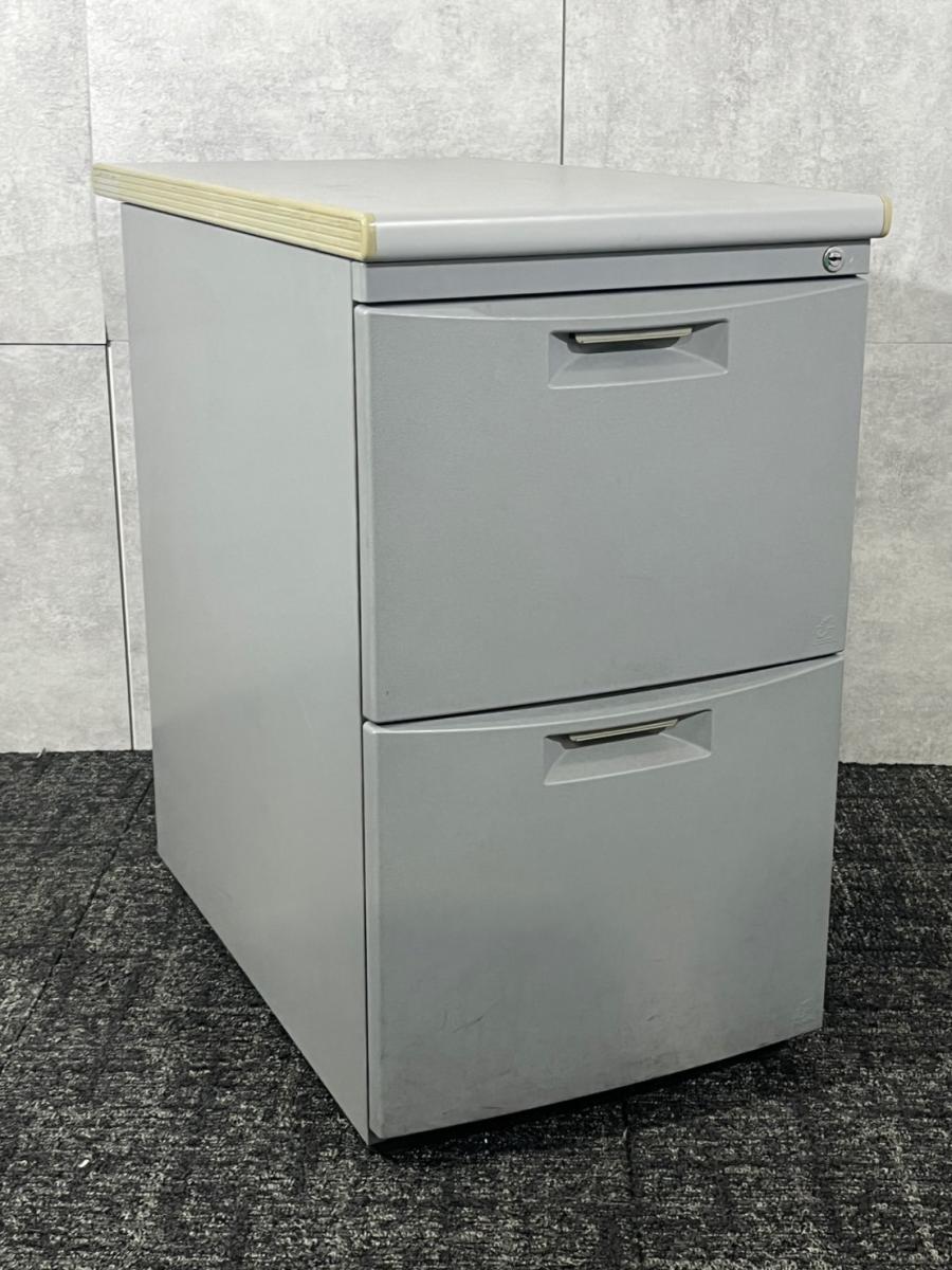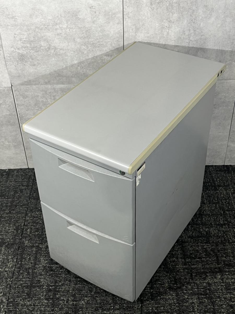イトーキ CZシリーズ 2段脇机 鍵付き シリンダー錠 グレー デスク横に置いて作業スペースの拡張を ※樹脂部分に日焼け若干あり