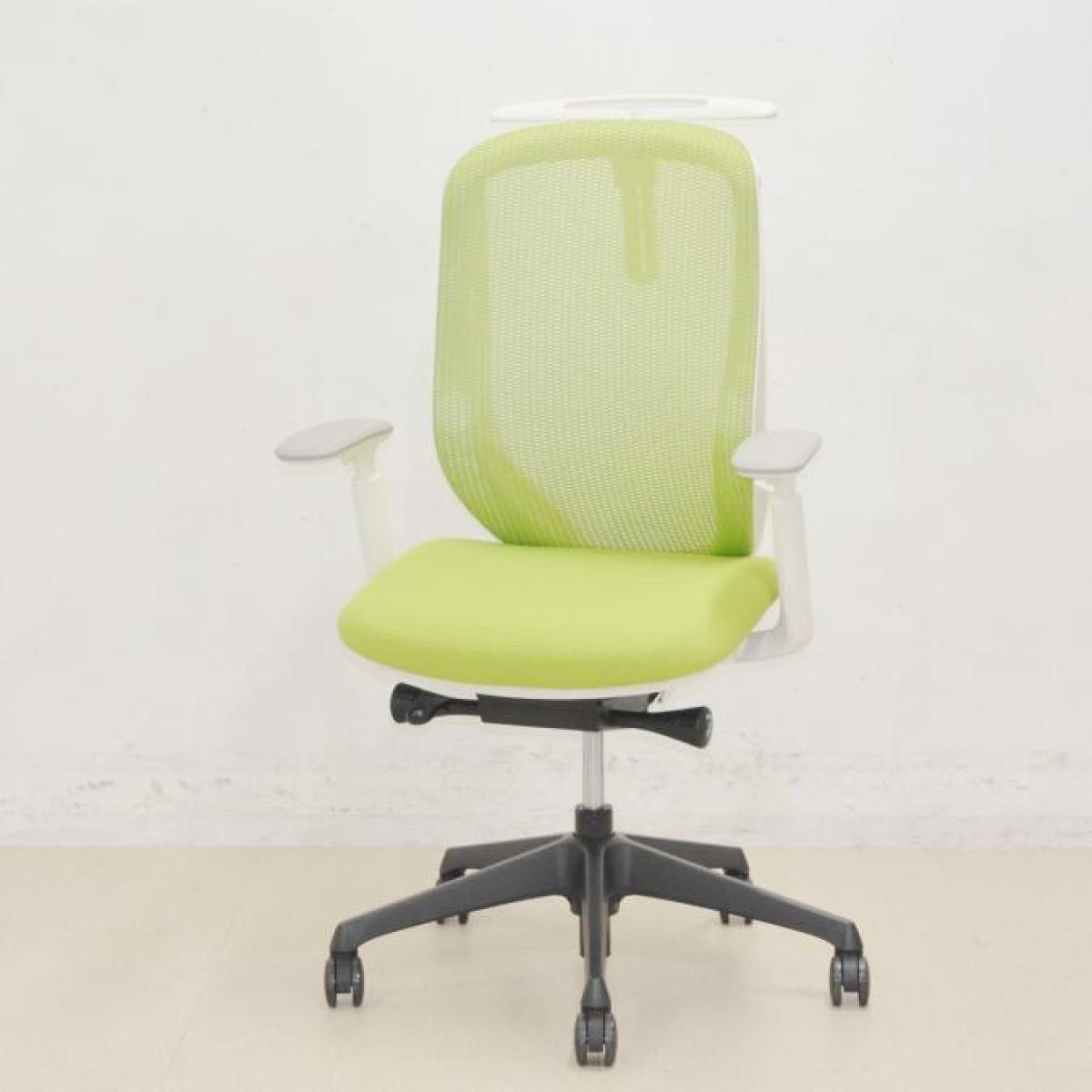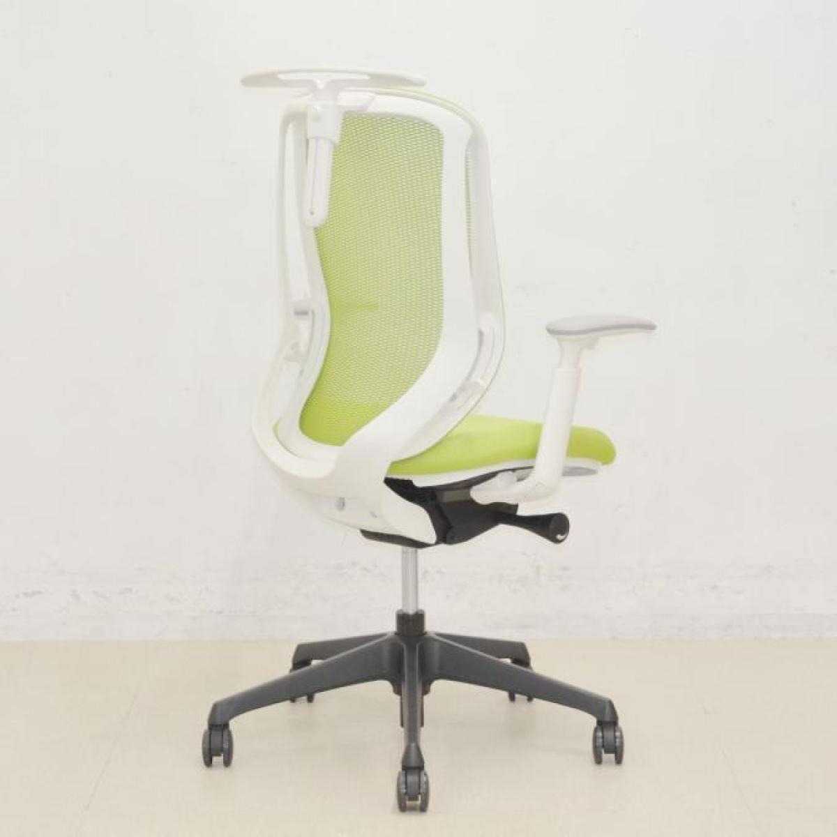 【ワーカーを支える機能を多数持つ人気チェア!優しい座り込みで姿勢も安定!】■オカムラ製 シルフィー 肘付ハイバックチェア 背面メッシュ ■可動肘 ■座面:ライムグリーン 脚:ホワイト オフィスバスターズ 東大阪店