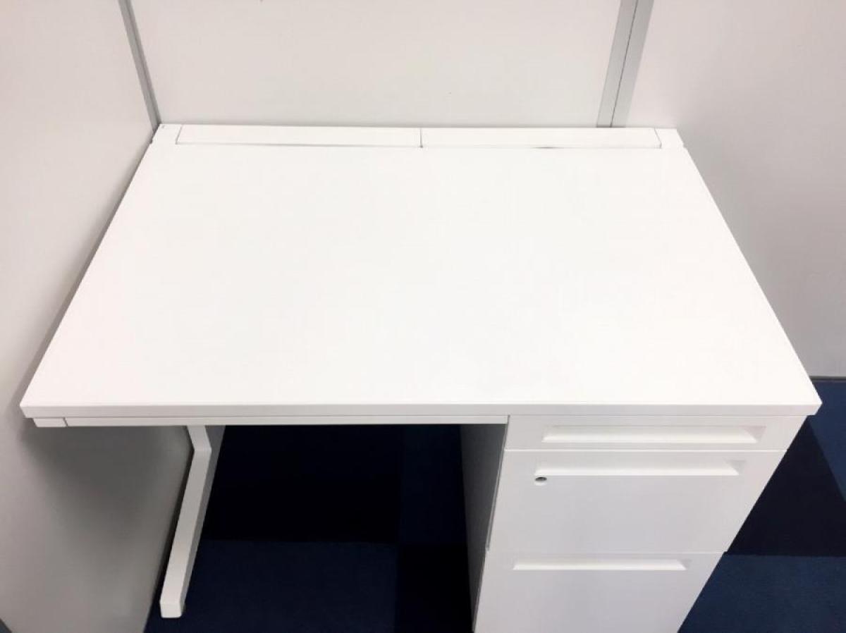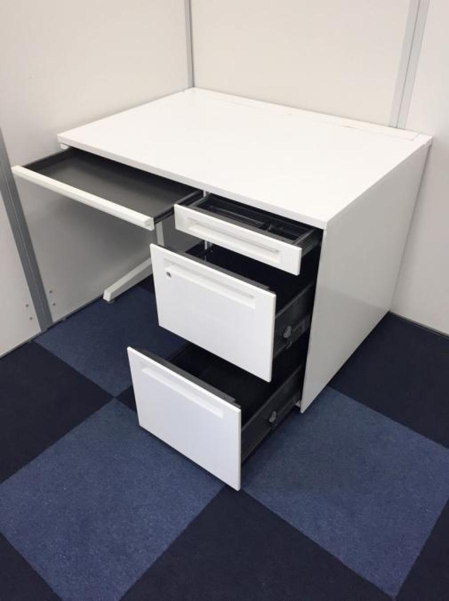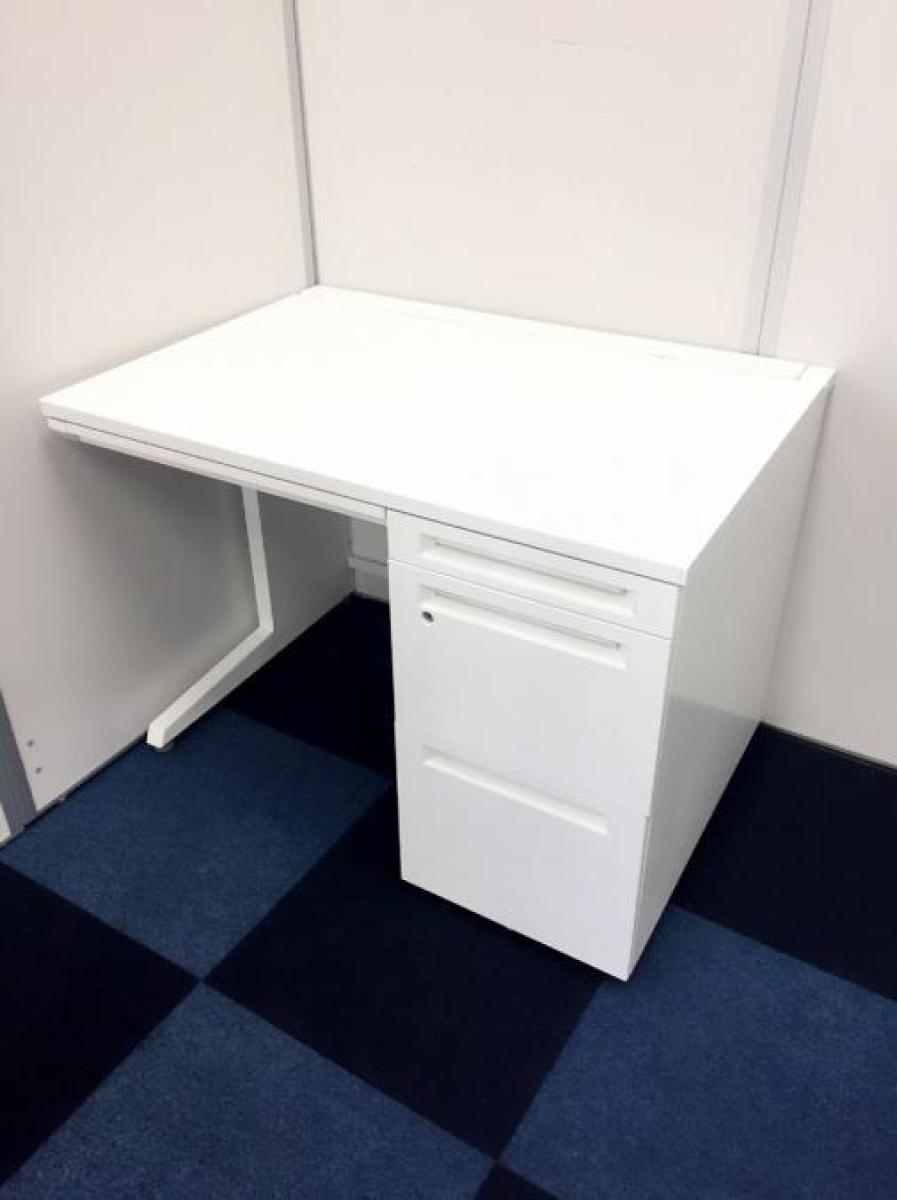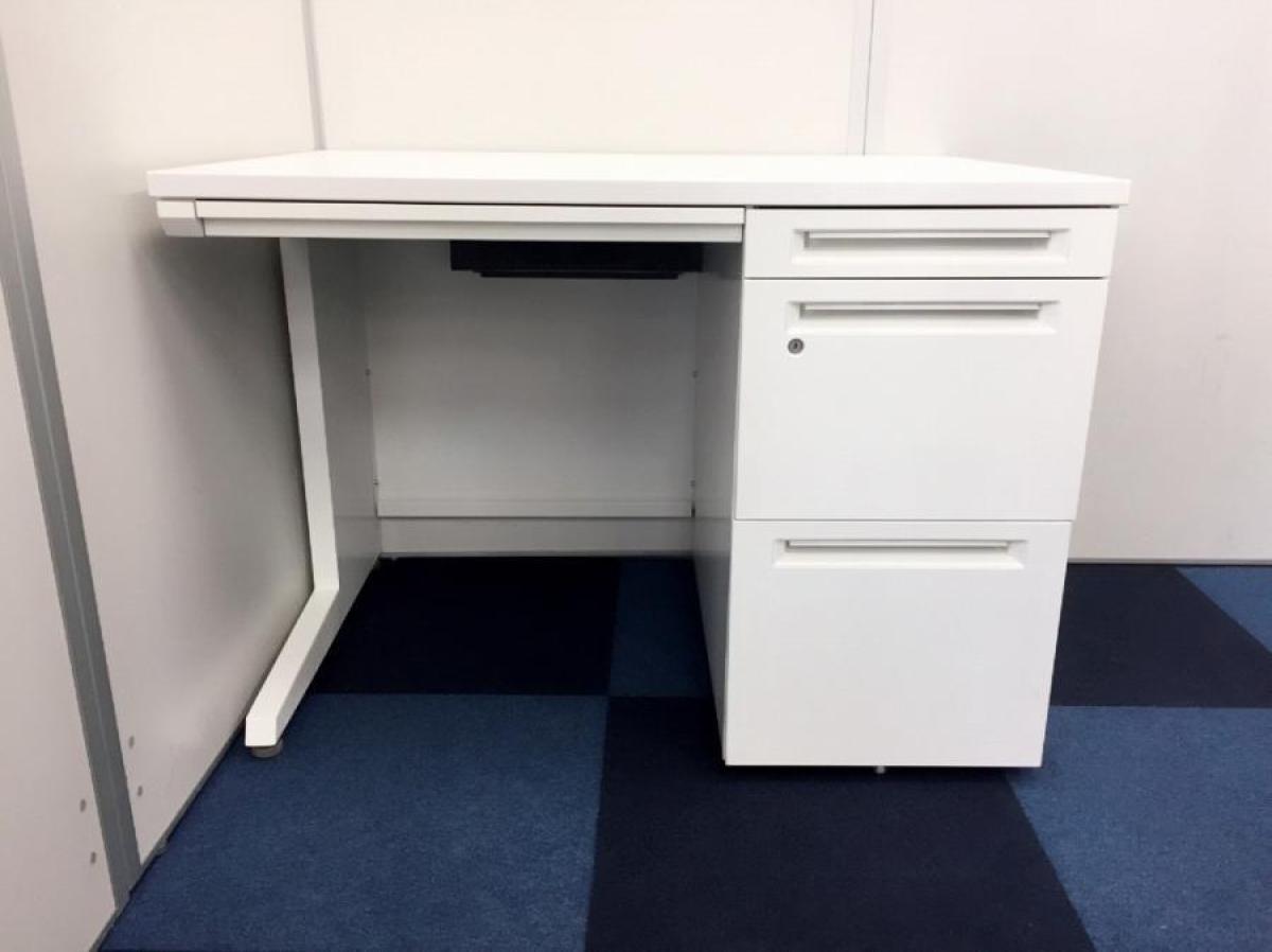 【T11】【商品入替のため、残り6台限り】オカムラ製 アドバンシシリーズ ホワイトカラー 4段収納で整理も完璧! コンパクトで清潔感のあるオフィス W1000片袖机!!