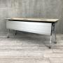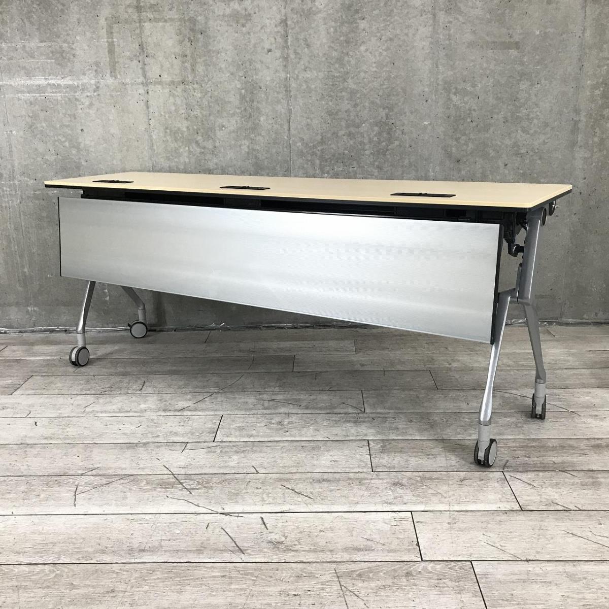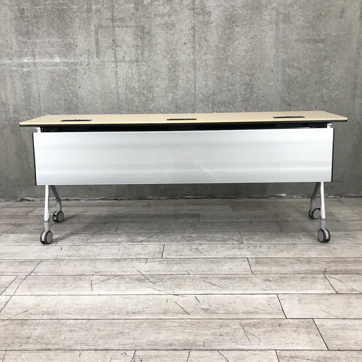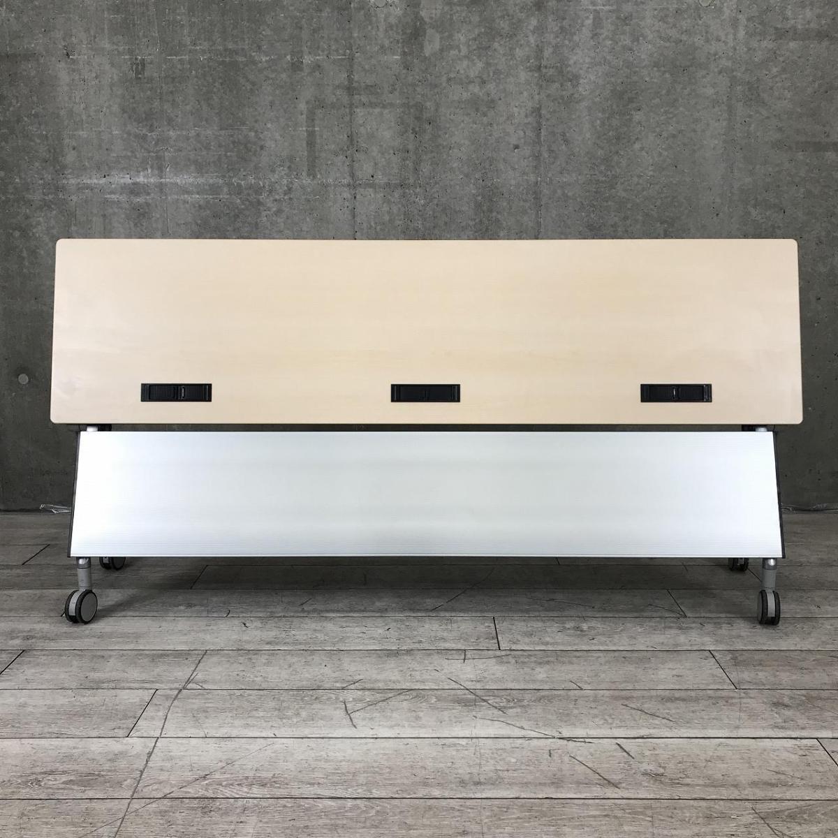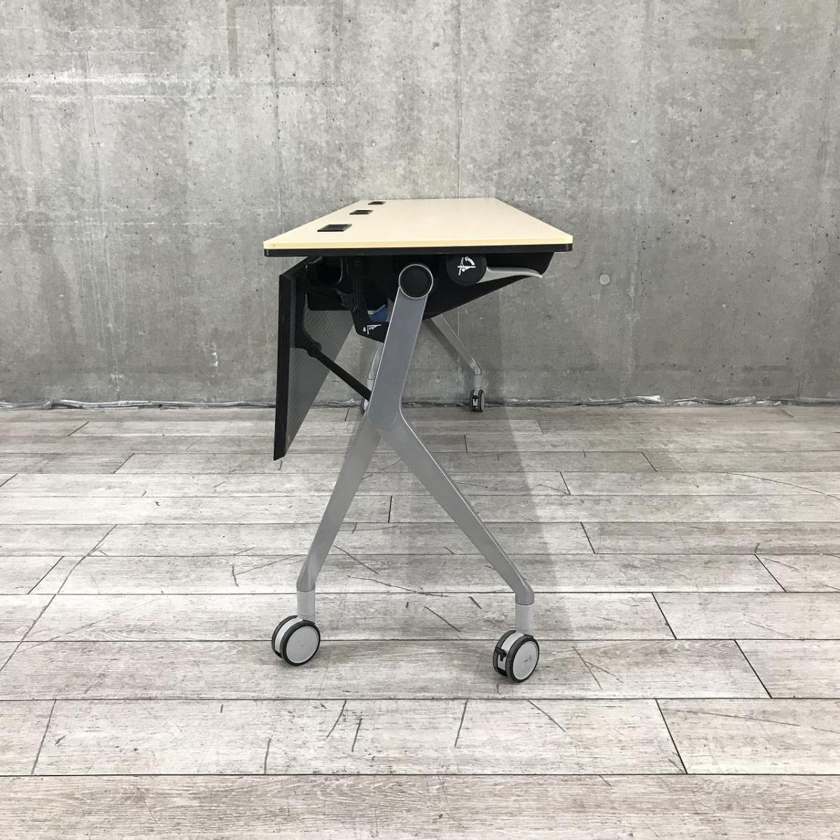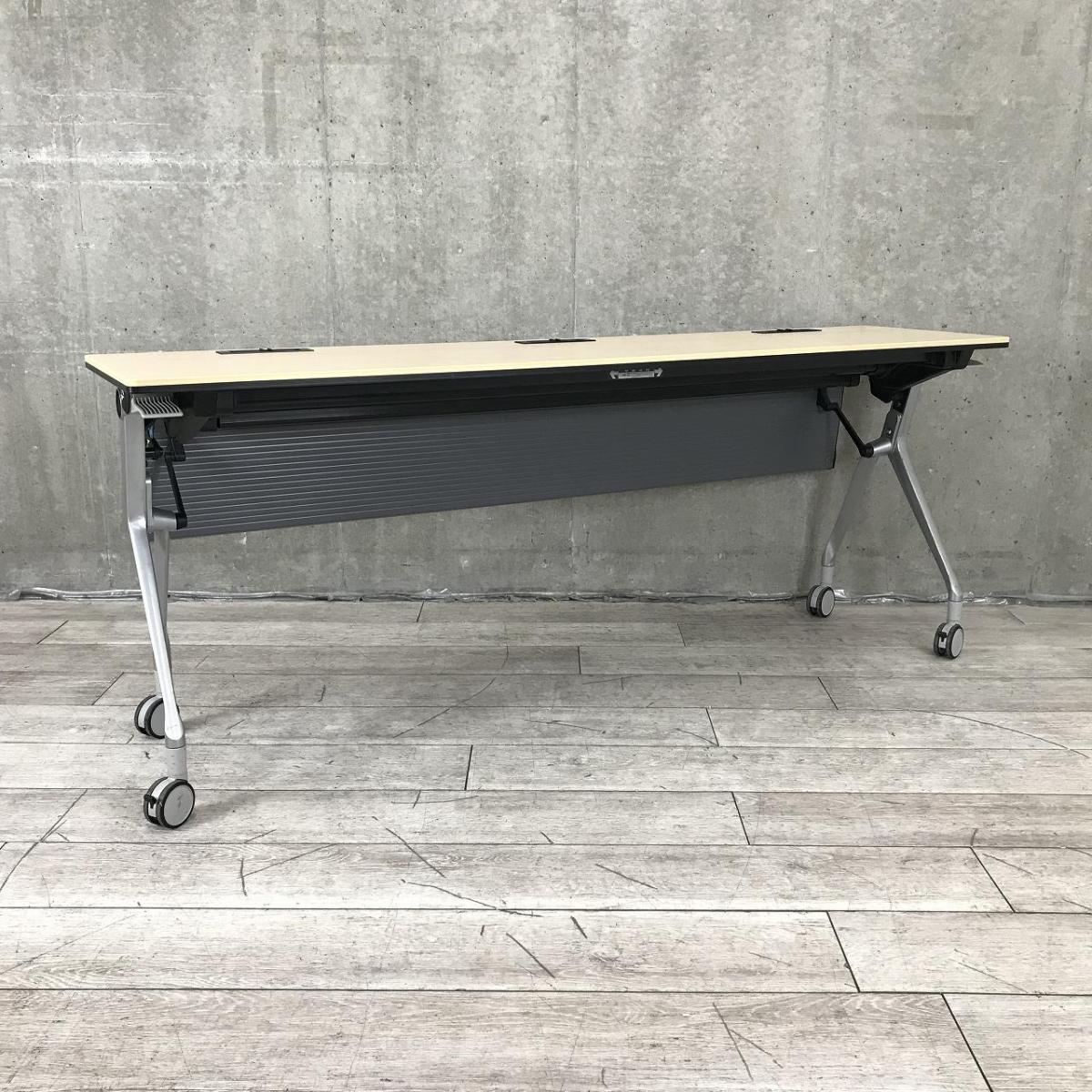 【折りたたみ収納が秀逸!スタイリッシュなデザインで高品質!】■オカムラ(okamura)製 インターアクトNT(INTER ACTNT) サイドスタックテーブル W1800×D450×H720mm ■幕板/キャスター付 ■木目ナチュラル- つくば店
