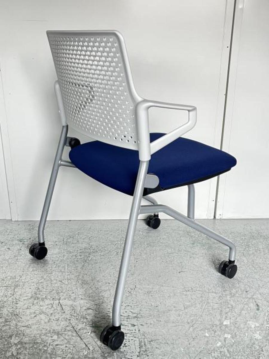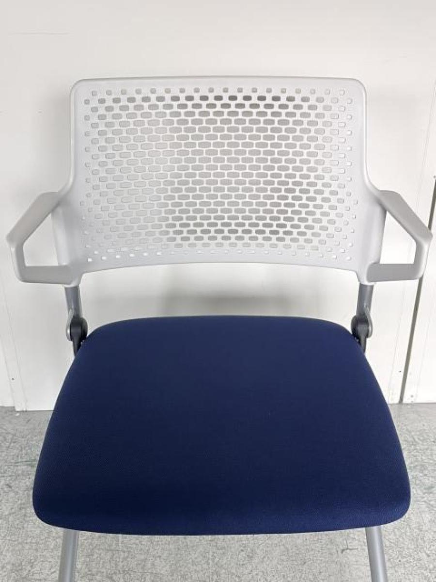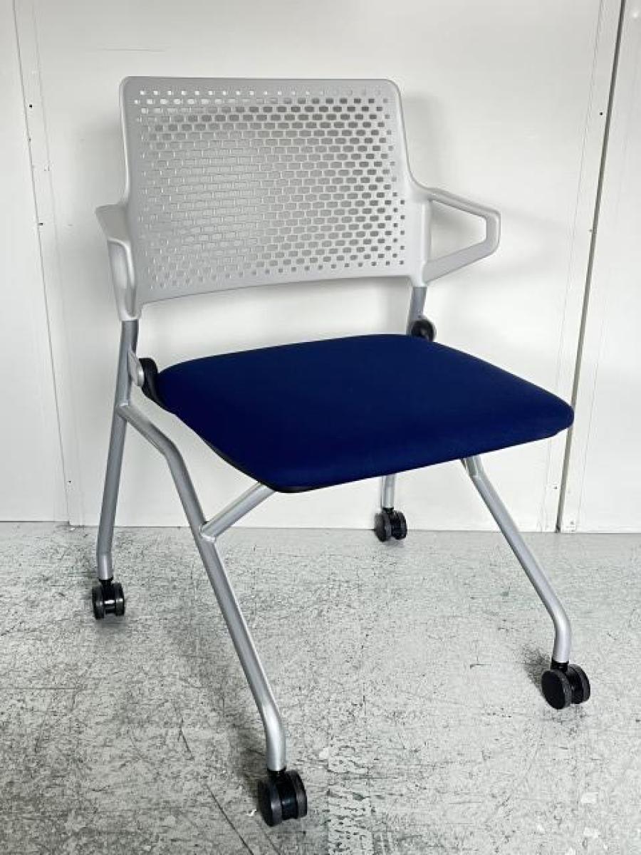 【折り畳んで収納!キャスター付で動作も楽々!】■ウチダ(UCHIDA)製 FM-345シリーズ 肘付 ネスティングチェア 会議用 キャスター付 ■背面樹脂メッシュ ■ブルー×ホワイトシェル