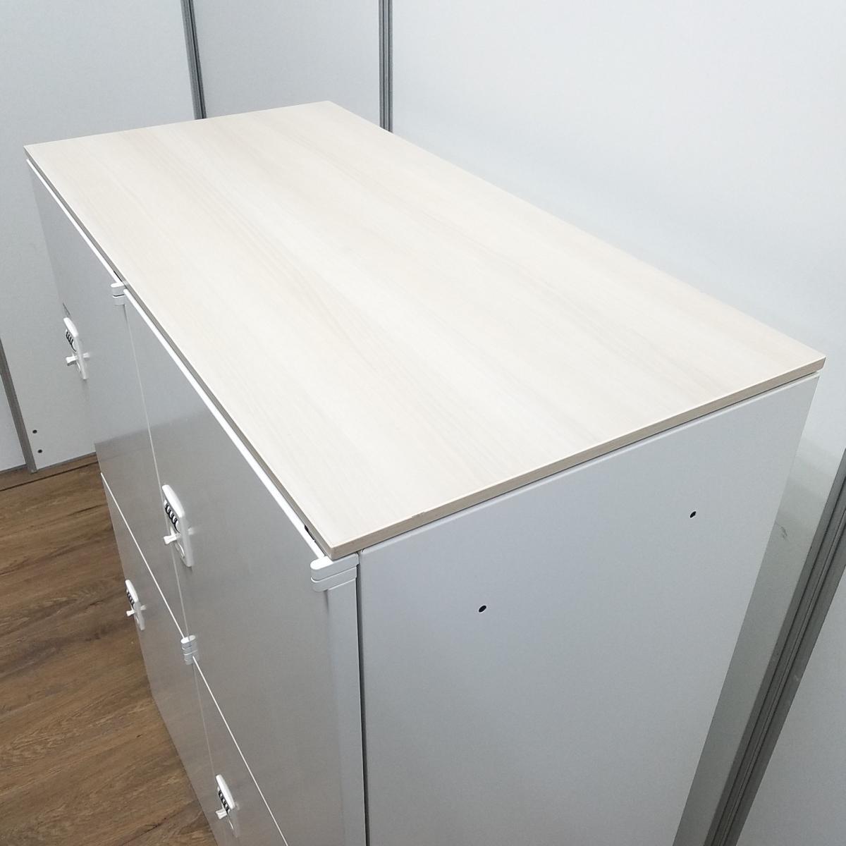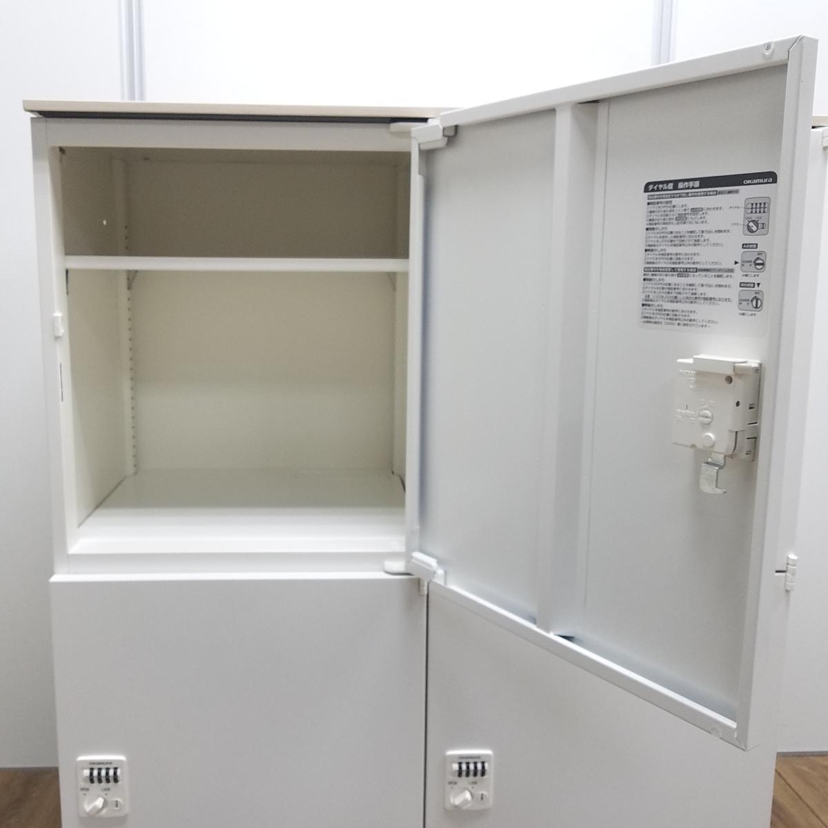 【T10】【T9】【商品入替のため、残り1台限り】オカムラ製 レクトラインシリーズ ホワイト ダイヤル 天板:木目ナチュラル 天板付き 4人用パーソナルロッカーが入荷! カウンター代わりにも! パーソナルロッカー 4人用ロッカー!!- 京都東寺店