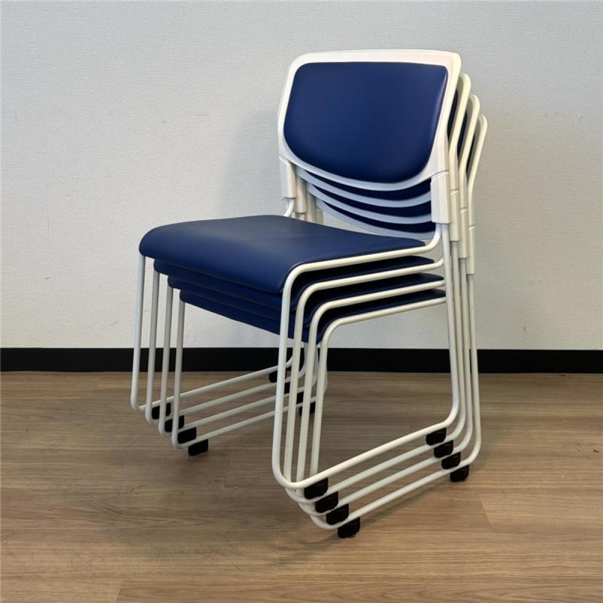 【シンプルなデザインで使いやすい!重ねて収納可能なスタッキングチェア!会議室、共有スペースなどに!】 スタッキングチェア ミーティングチェア ■ブルー【2507】弊社使用欄【A】- 埼玉本店